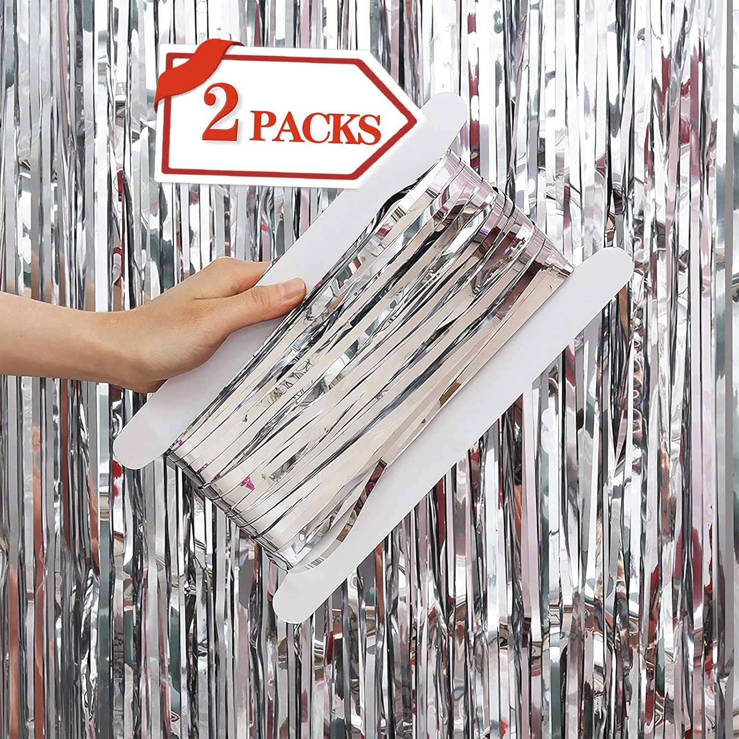 - What You Get: 2 pcs 3.28ft x 6.56ft (1mX2m) Tinsel foil fringe curtain/backdrops, enough length for decorate your party