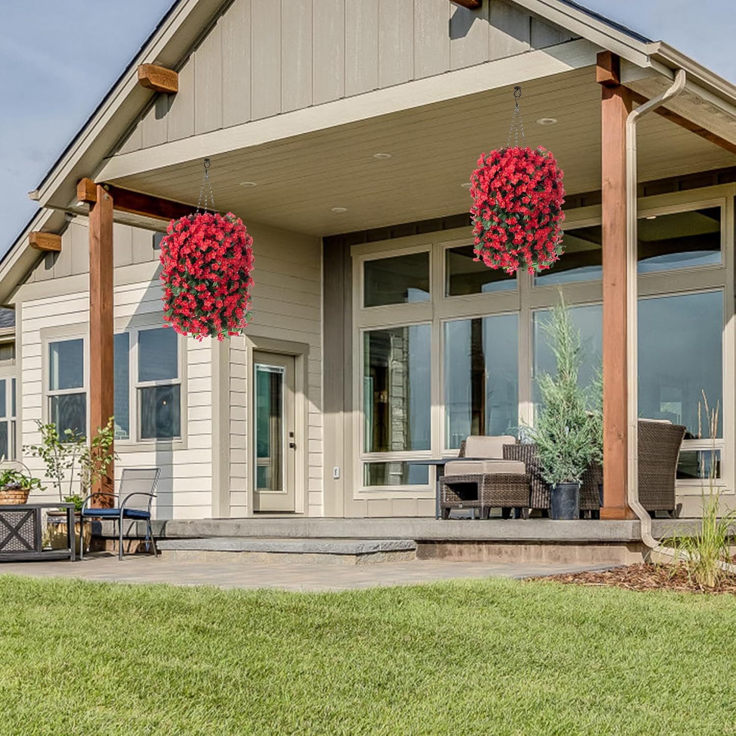 - GOOD QUALITY: The hanging basket and artificial flowers were made of good quality material that don’t require maintenance after assembly. It’s UV resistance and won’t fade, sturdy enough for any weather. No watering needs.