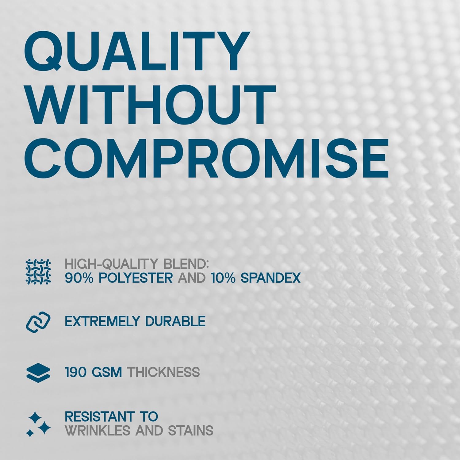 - Perfect Fit for 8-Foot Tables: Our pack of 2 stretch table cloths for 8 ft tables, made from a high-quality blend of 90% polyester and 10% spandex, provides a tailored fit for 8-foot tables, ensuring a sleek, polished look for any event