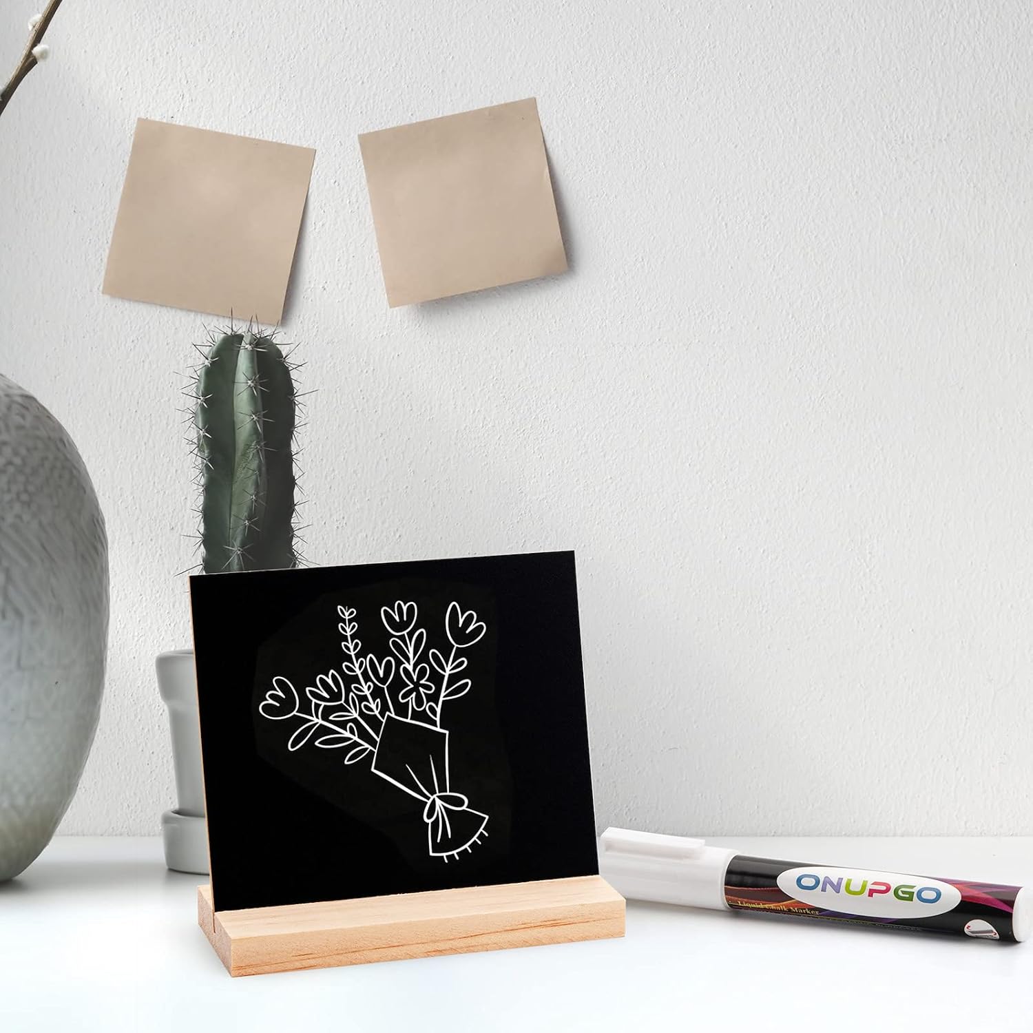 ONUPGO Chalkboard Signs with Wood Base Stands, 10X12cm Vintage Wooden Tabletop Decorative Chalkboard Sign, Message Chalkboard Sign for Party, Restaurant, Wedding, Set of 6
