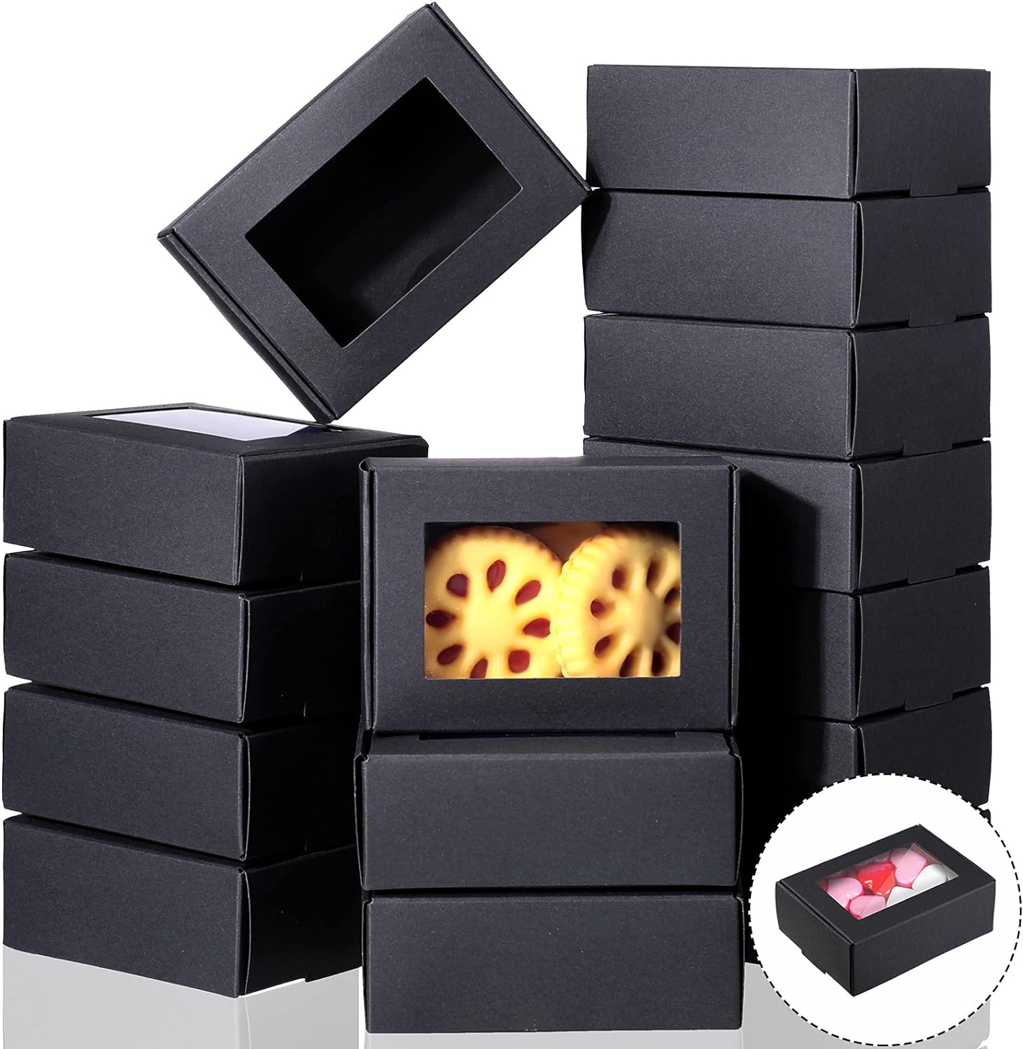 Zonon 30 Pcs Soap Boxes for Homemade Packaging, Mini Kraft Treat Boxes with Window for Bakery Candy Soap Making Gift Packaging (3.7 x 2.6 x 1.37 Inch,Black)
