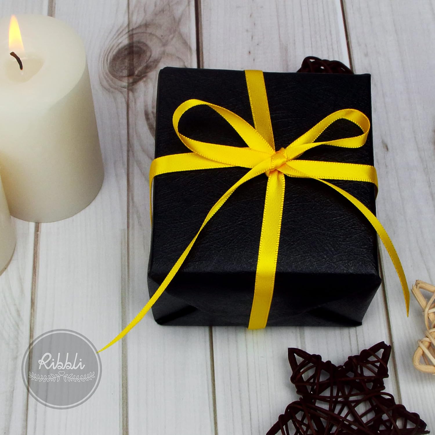 Ribbli Maize Yellow Double Faced Satin Ribbon,1/4” x Continuous 25 Yards,Use for Bows Bouquet,Gift Wrapping,Baby Shower,Floral Arrangement