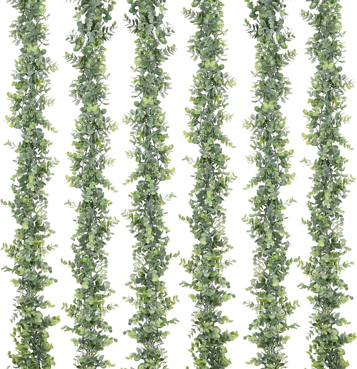 - 6 Strands of faux eucalyptus garland, each strand with 134 pcs fake eucalyptus leaves, total 804 pcs eucalyptus leaves. This eucalyptus garland has many branches, looks very realistic and Three-dimensional.