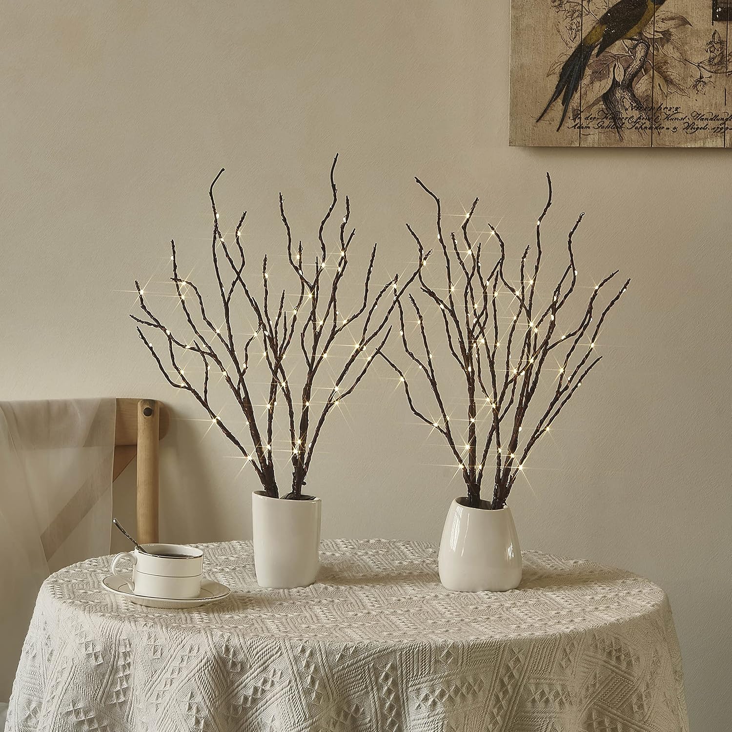 Birchlitland Lighted Brown Branches 18IN 70L Warm White Fairy Lights, LED Willow Branch Lights with Timer Battery Operated for Home Bedroom Living Room Vase Decoration
