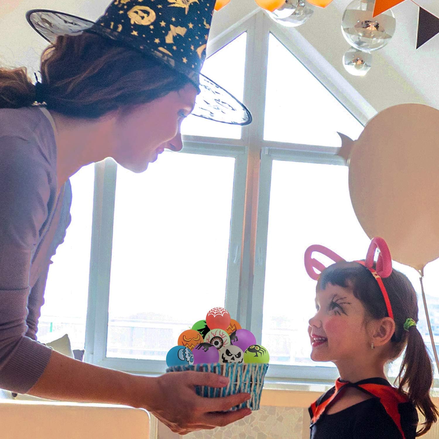 40 Glow in The Dark Bouncing Balls,Halloween Party Favors Supplies ,8 Halloween Theme Designs, Trick or Treating Goodie Bag Filler, School Classroom Game Rewards, Halloween Miniatures (with pouch bag)