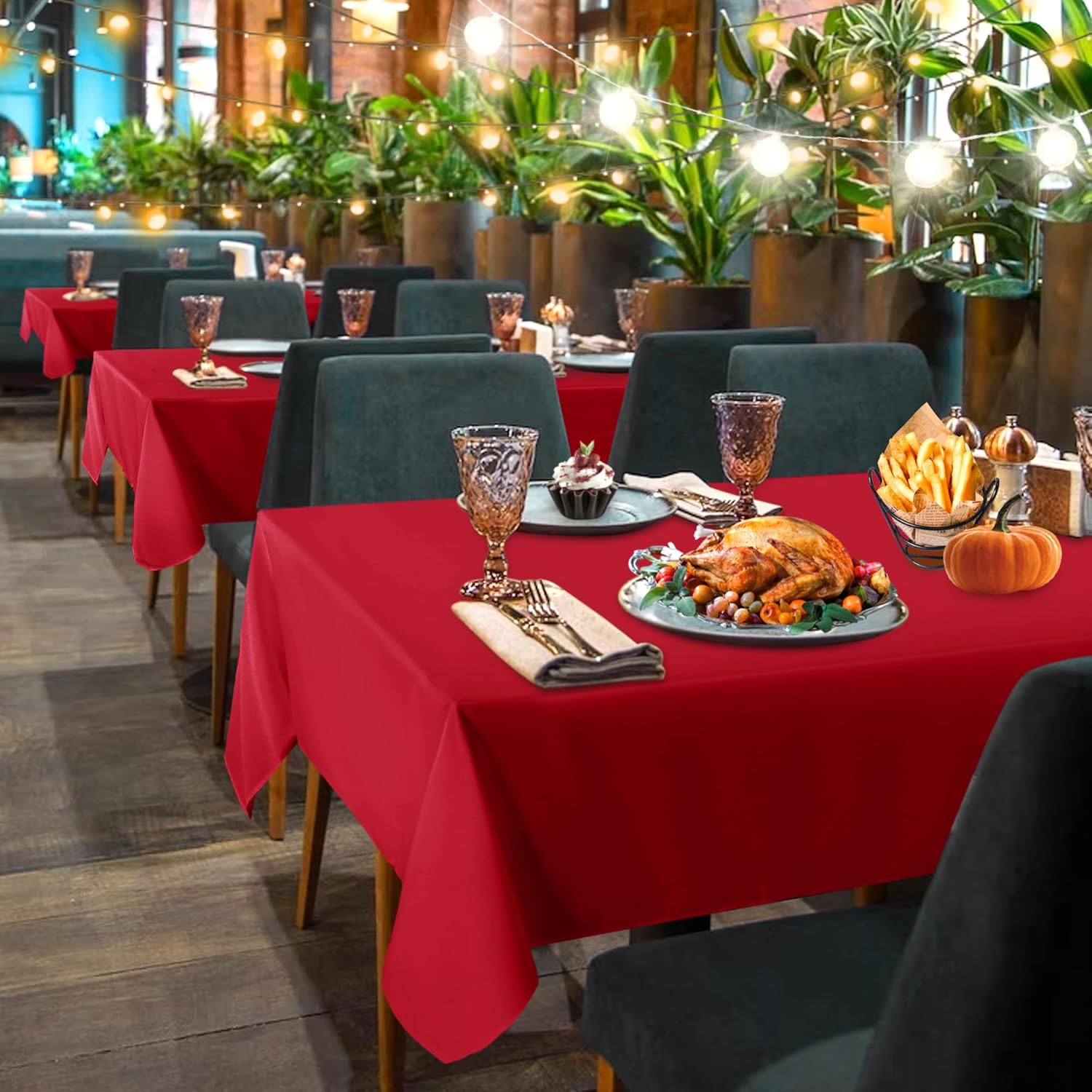 - MEASUREMENTS: This red table cloth is 60 inch wide and 102 inch long, perfect for standard 6ft table, providing 15 inch drop.