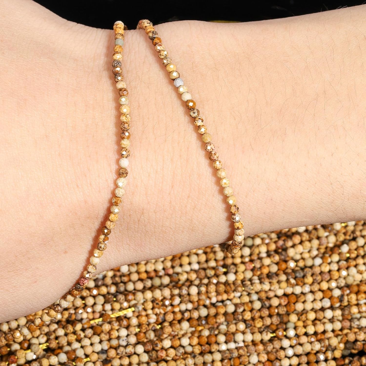 Song Xi 180pcs 2mm Natural Picture Gemstone Beads Faceted Round Loose Stone Beads for Jewelry Making