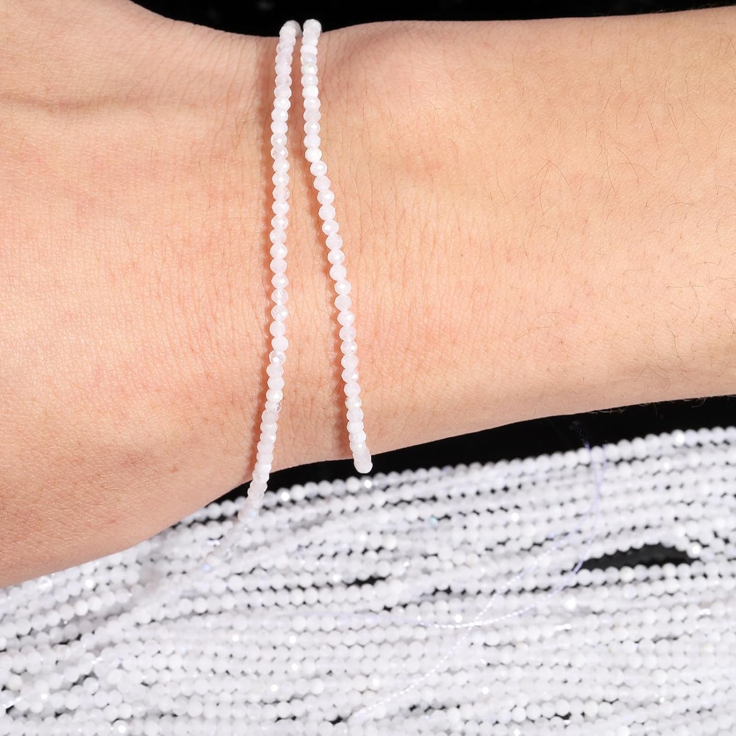 Song Xi 180pcs 2mm Natural White Moonstone Gemstone Faceted Round Loose Stones for Bracelet Jewelry Making, Small Stones for Christmas Mother's Day Gift for Women