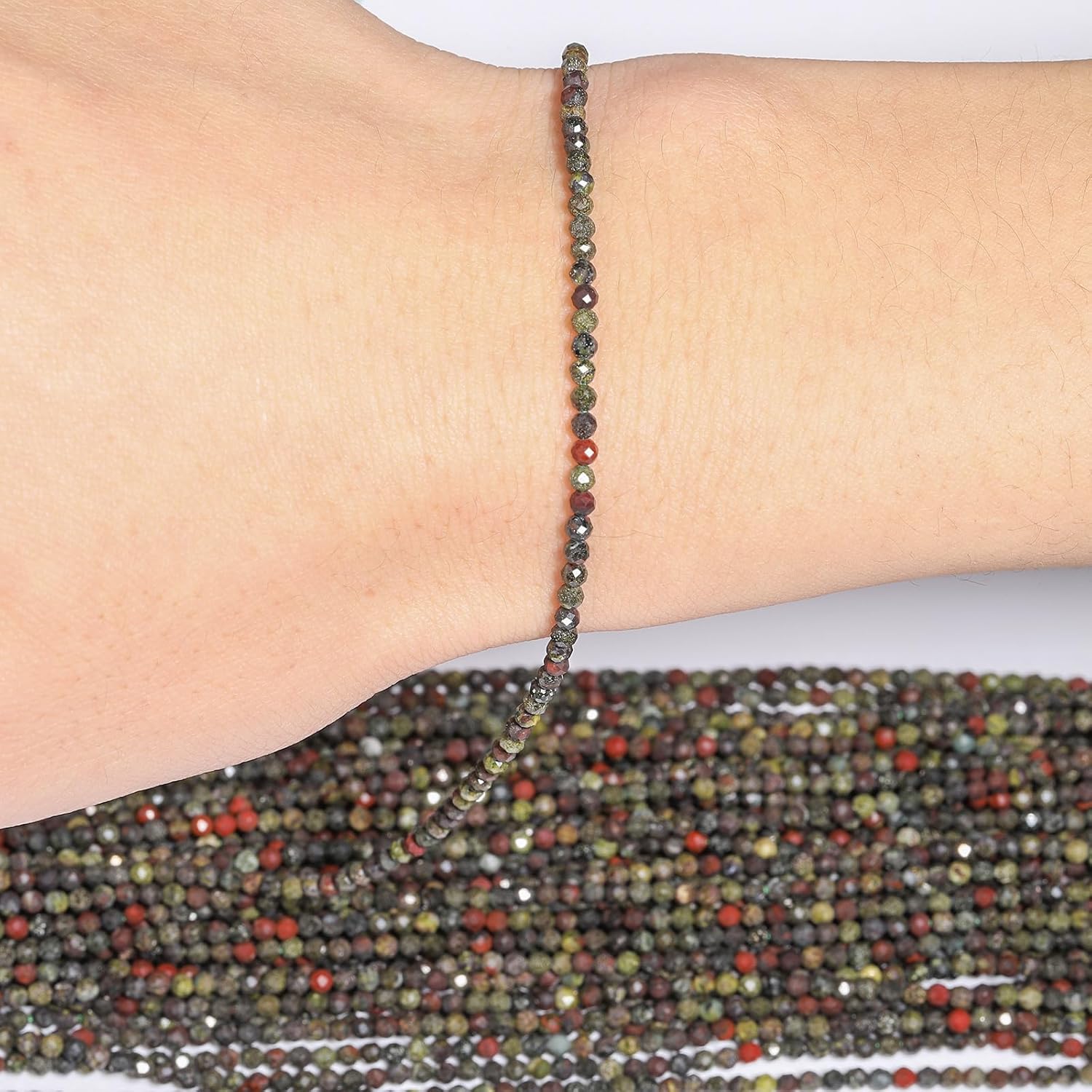 Song Xi 180pcs 2mm Natural Dragon Blood Gemstone Beads Faceted Round Loose Stone Beads for Jewelry Making
