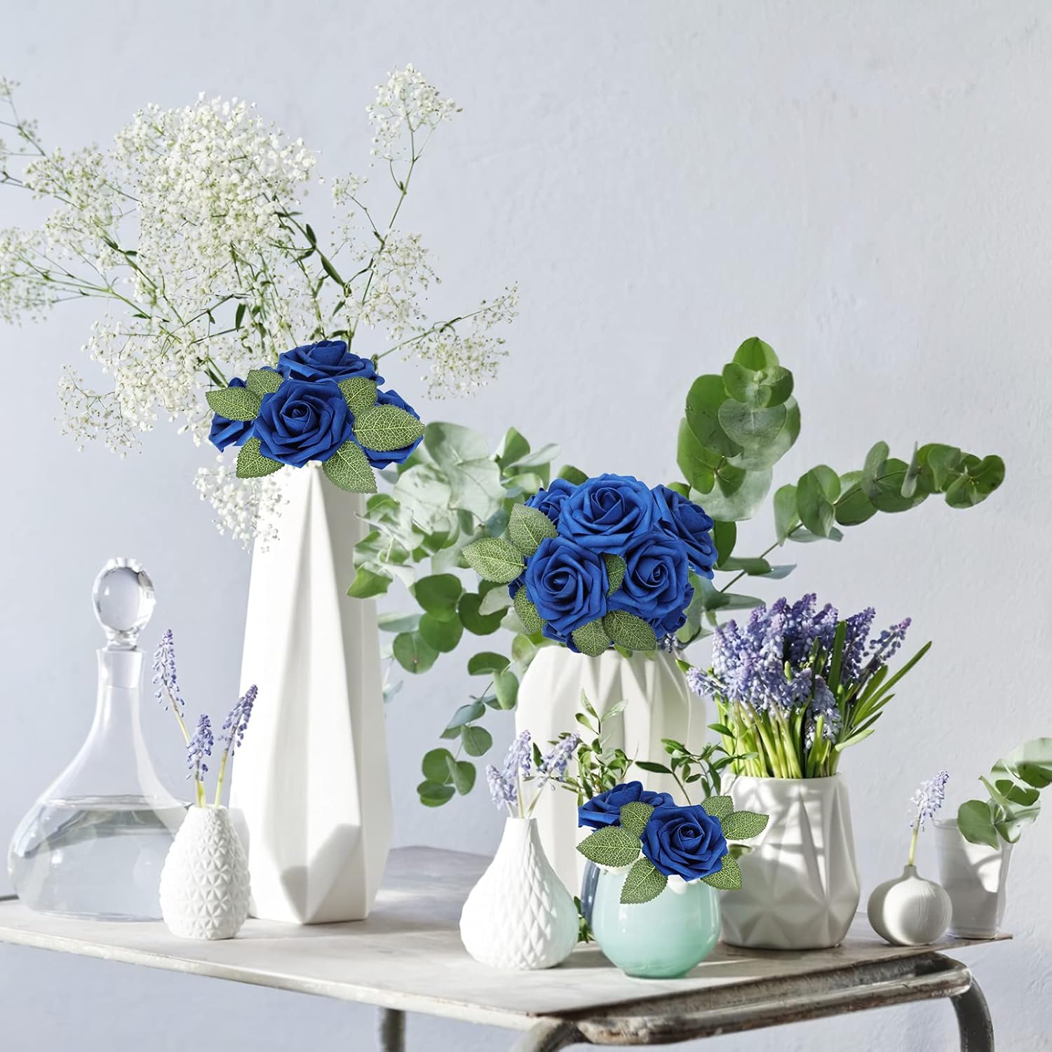 AmyHomie Artificial Flower Royal Blue Rose 25pcs Real Looking Fake Roses w/Stem for DIY Wedding Bouquets Centerpieces Arrangements Party Baby Shower Home Decorations