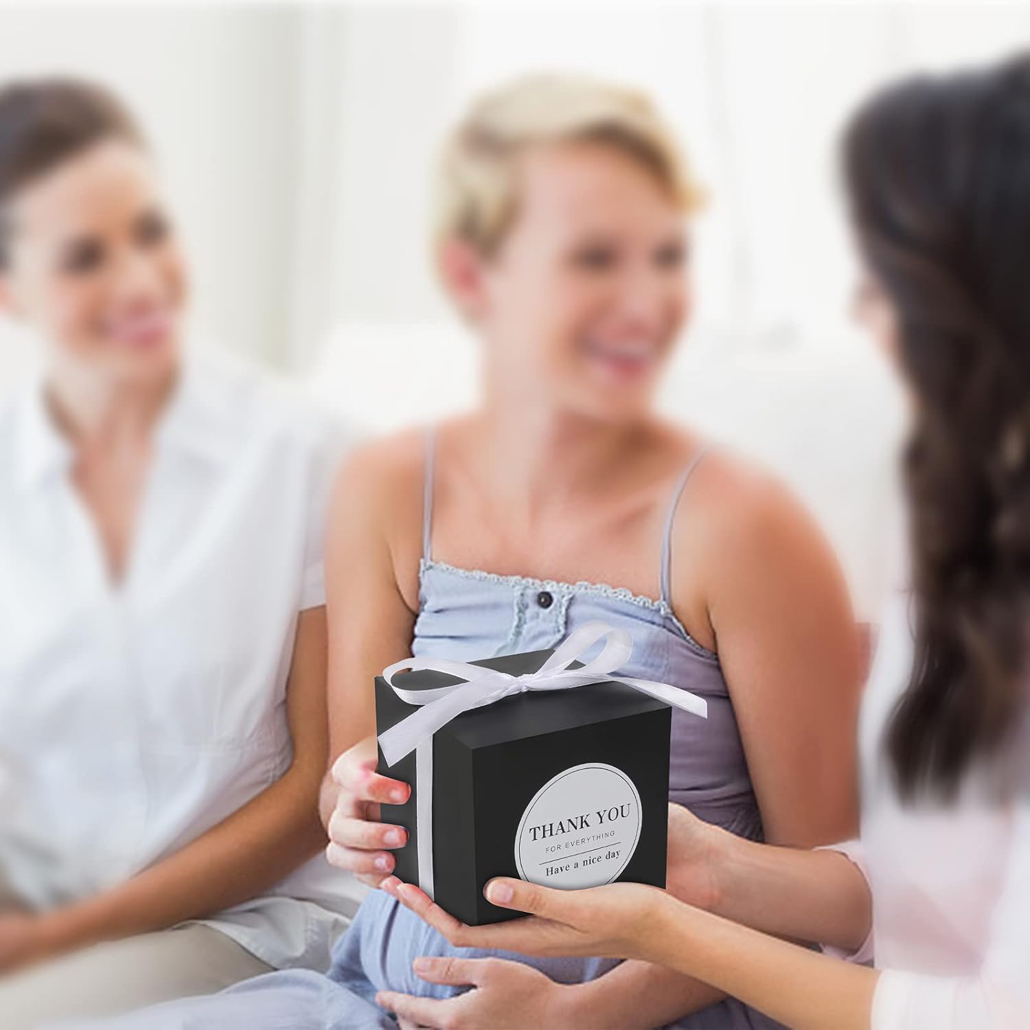 - What You'll Get: 60pcs Black favor boxes,60pcs white ribbons. you can tie a bow knot on top, which will be more elegant and romantic for party.