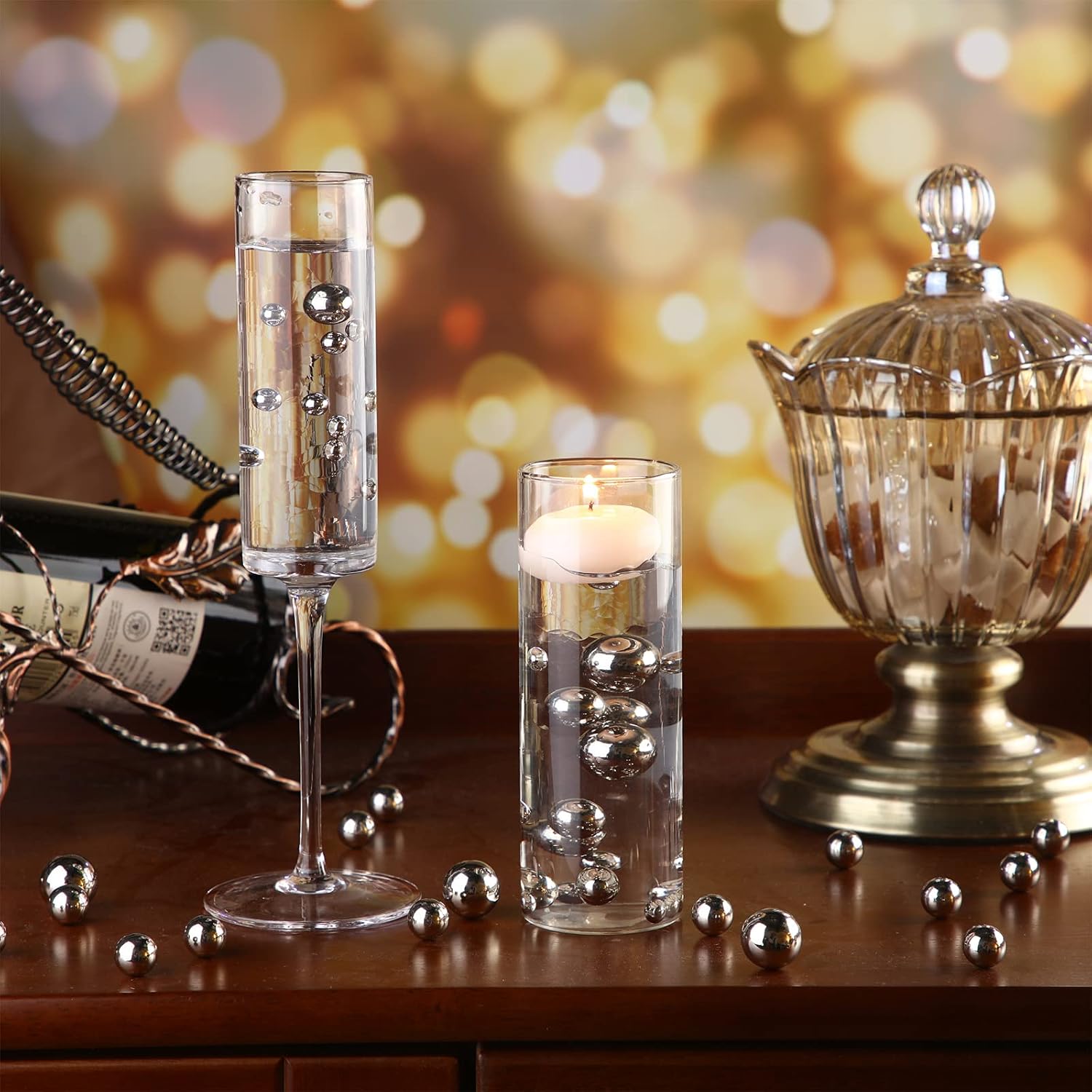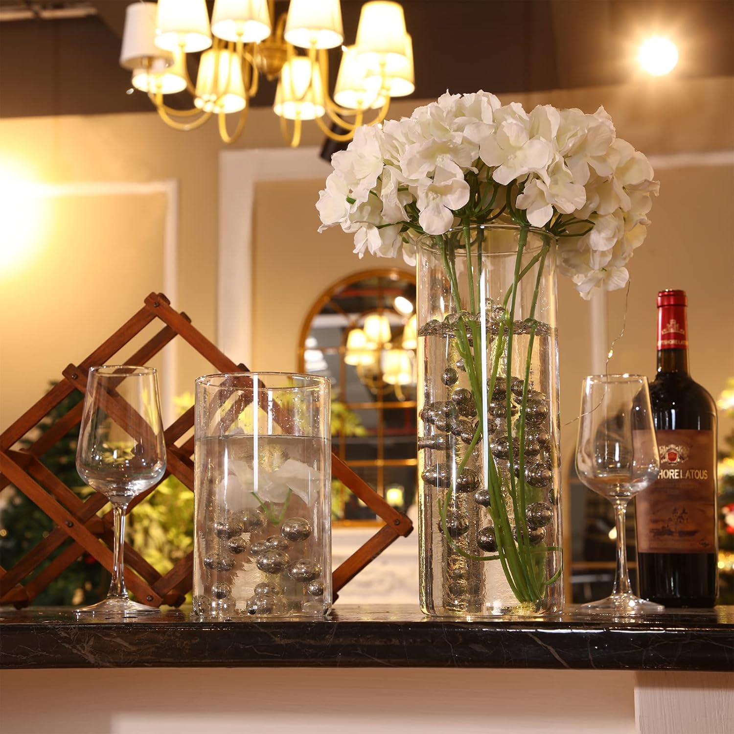 150 Pieces Vase Filler Faux Pearls Vase Makeup Beads No Hole Gloss Bead Mixed Sizes Round Pearl for Home Party Wedding Decor, 8/14/20 mm(Silver)