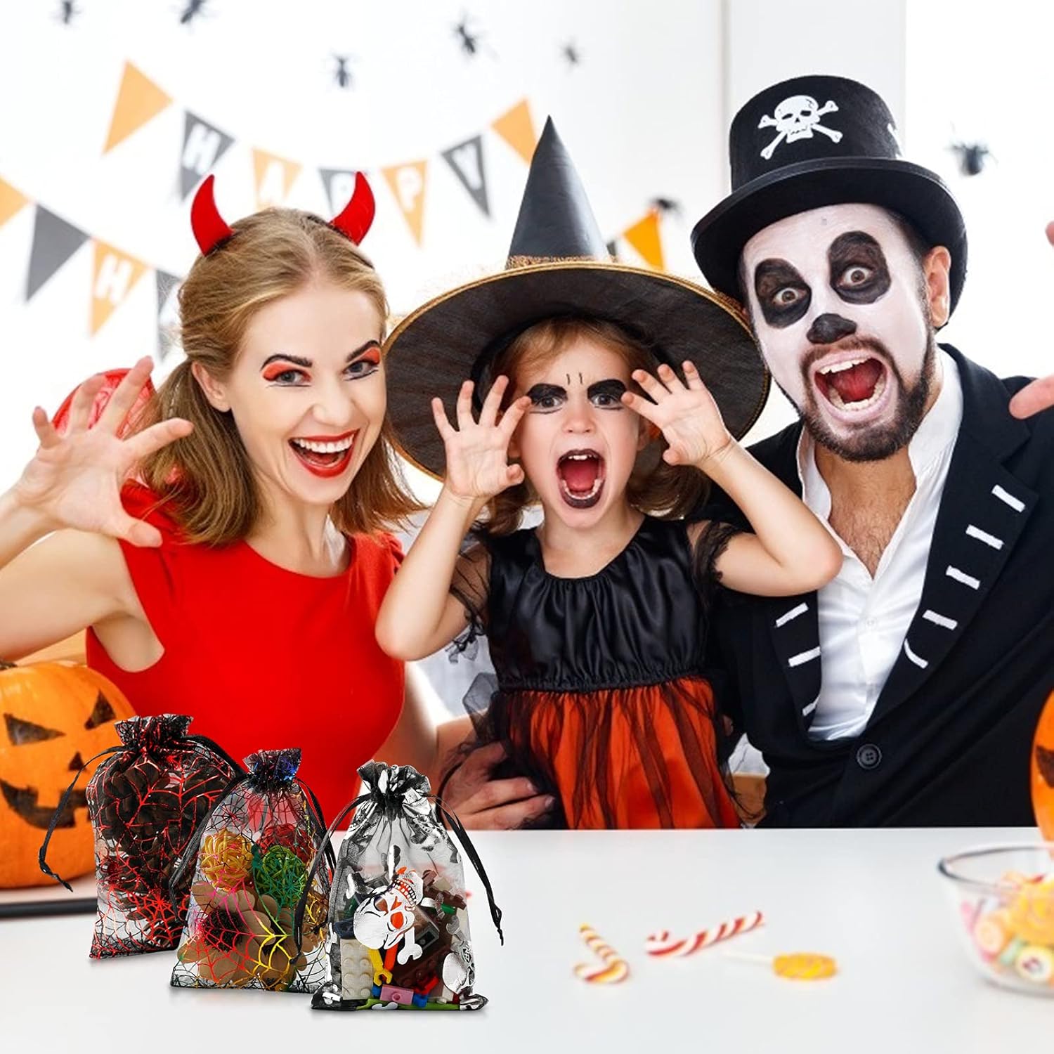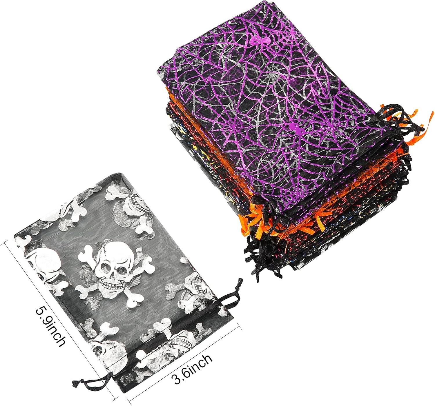 - š¬ Open and Close Easily: Our halloween organza bags adopt the drawstring design, so it makes easier to put or remove items from this pouch, keeping items clean.