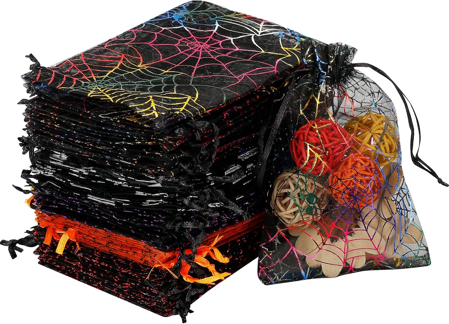 WenTao Halloween Organza Bags, Black Spider Web Favor Gift Bags with Drawstring, 4 x 6 inches Jewelry Gift Bags for Christmas, Halloween, Festival, Pouches Candy Mesh Pouches