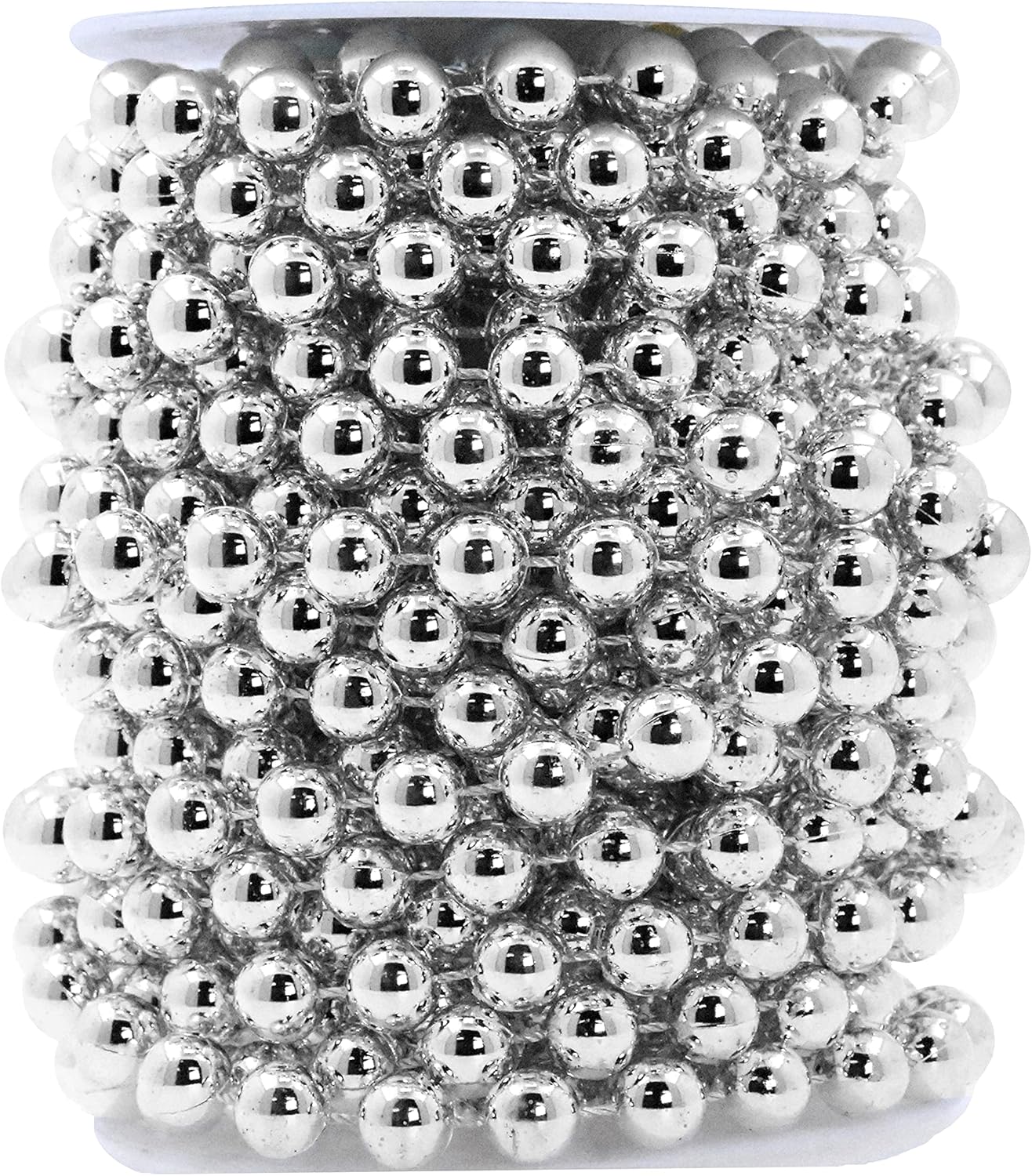 Mandala Crafts 10mm Faux Metallic Silver Pearl Beads Roll - 11 Yards Strand of Fake Pearls Chain Garlands Spool String for Christmas Tree, Wedding, Party, Vases, DIY Decoration