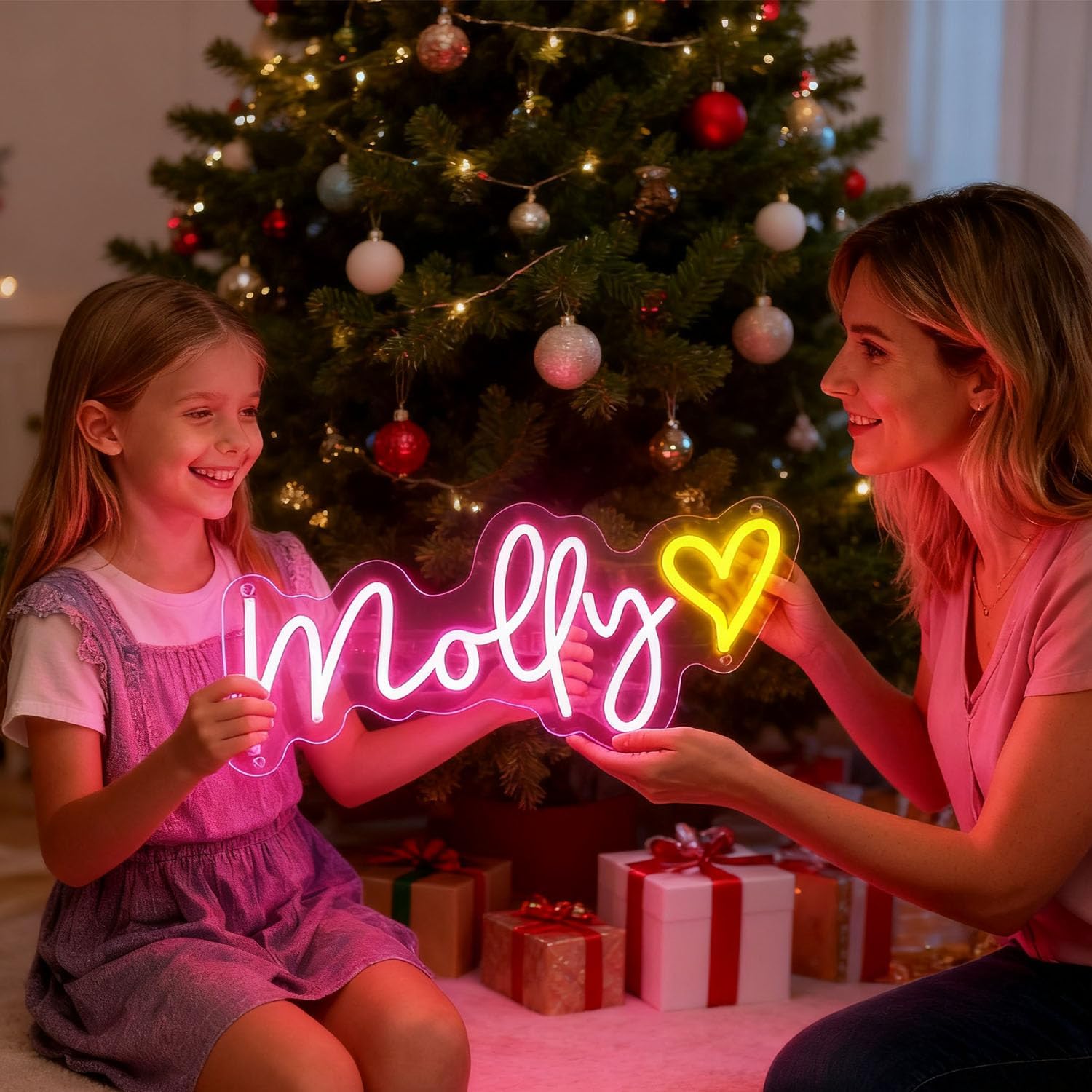 - 【Safer & Handmade Sign】The Handmade Custom LED Neon Sign is Made of High Quality and safer Flexible Led Light Strips and 0.2"(5mm) Thickness Transparent Acrylic Backboard Which is Brighter, Safer than glass tube neon sign. It is safer. There is no Noise and No Heat.