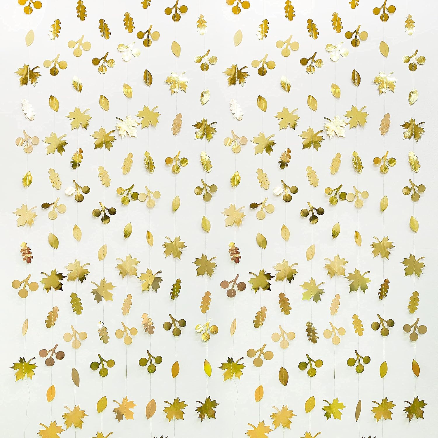 - 🍁HIGH QUALITY-Our gold thanksgiving fall party garland are made of double sided high-quality gold metallic paper, carefully hand-made and machine-sewn together with thread.durable and reusable.