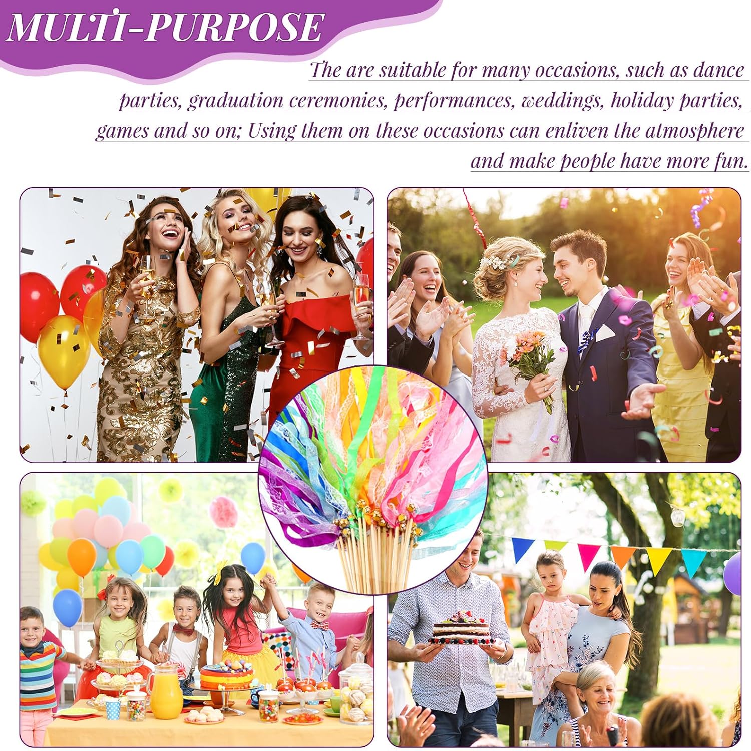 - Fine workmanship: wedding ribbon is firmly pasted on the wooden stick, so you don't have to worry about the ribbon falling when you wave it; The handles of the sticks with colored tapes are also very smooth, so you don't have to worry about getting scratched while holding them, bringing you nice using experience