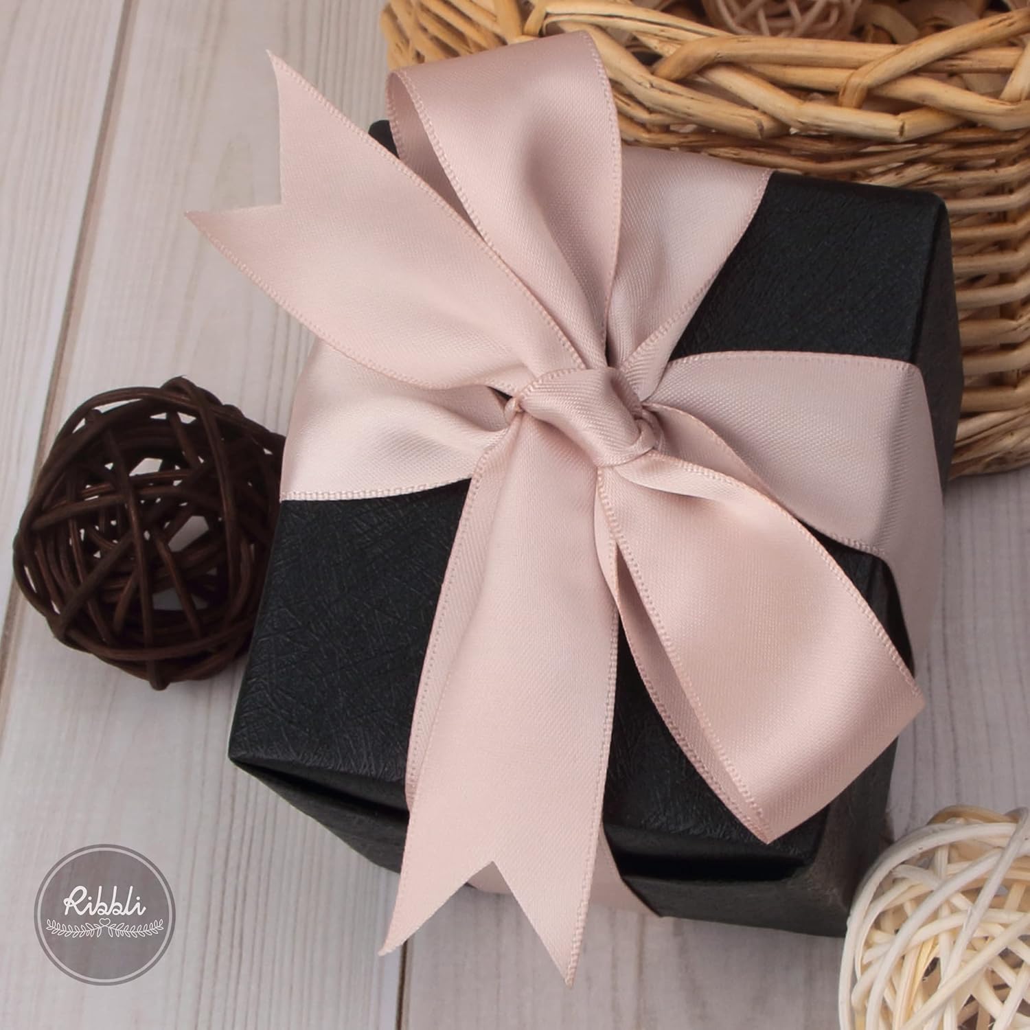 Ribbli Vanilla Double Faced Satin Ribbon,1” x Continuous 25 Yards,Use for Craft Bows Bouquet, Gift Wrapping, Wedding Decoration, Floral Arrangement