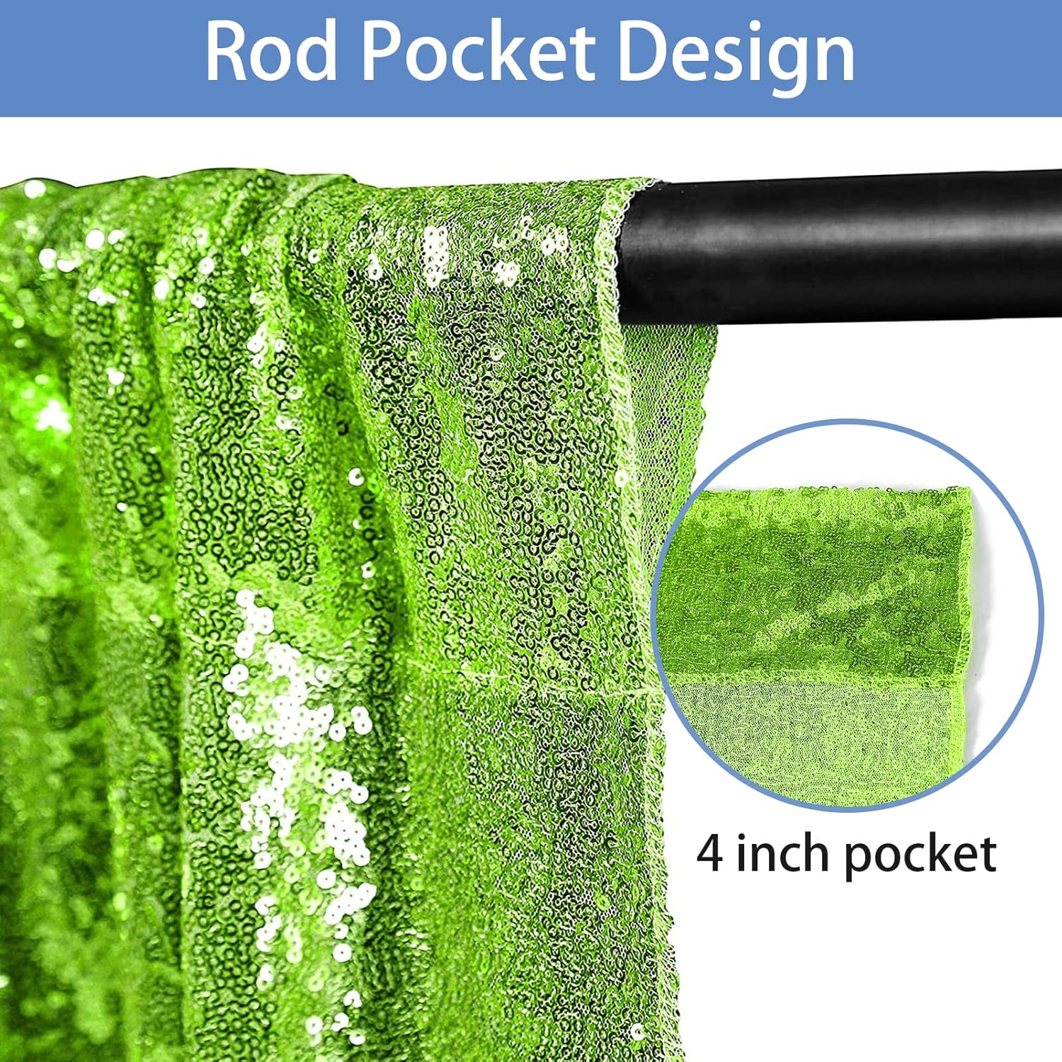 Hahuho Light Green Sequin Backdrop Curtain, 2PCS 2FTx8FT Glitter Backdrop Curtain for Parties, Christmas, Wedding, Banquet Decoration(2 Panels, 2FT x 8FT, Light Green)