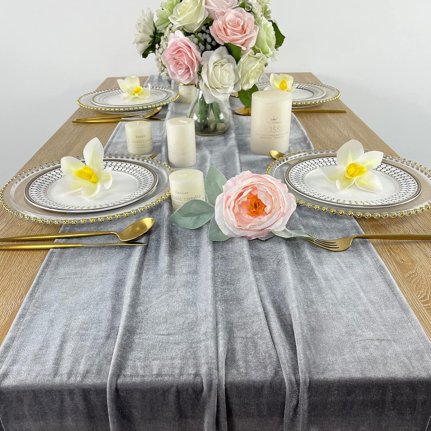 Luxurious Velvet Table Runner, 10ft Wedding Reception Decorations, 20x120inch Soft Velvet Fabric, Table Linen Overlay, Wedding Table Runners (Gray, 20X120inch)