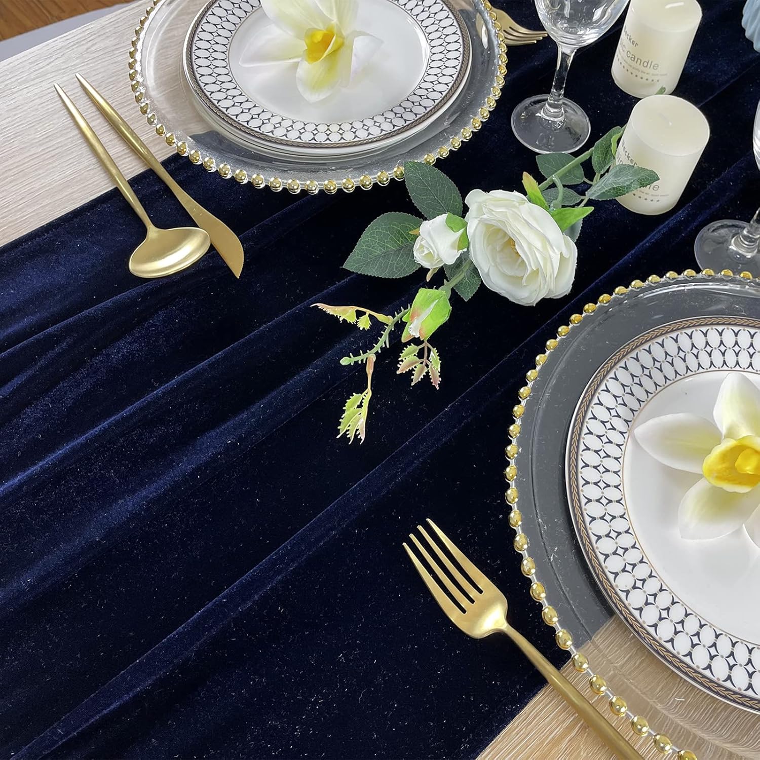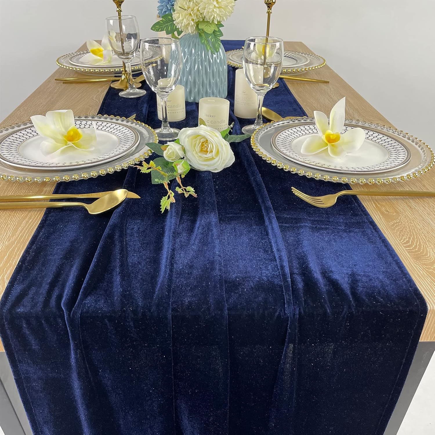 Luxurious Velvet Table Runner, 10ft Wedding Reception Decorations, 20x120inch Soft Velvet Fabric, Table Linen Overlay, Wedding Table Runners (Navy Blue, 20X120inch)