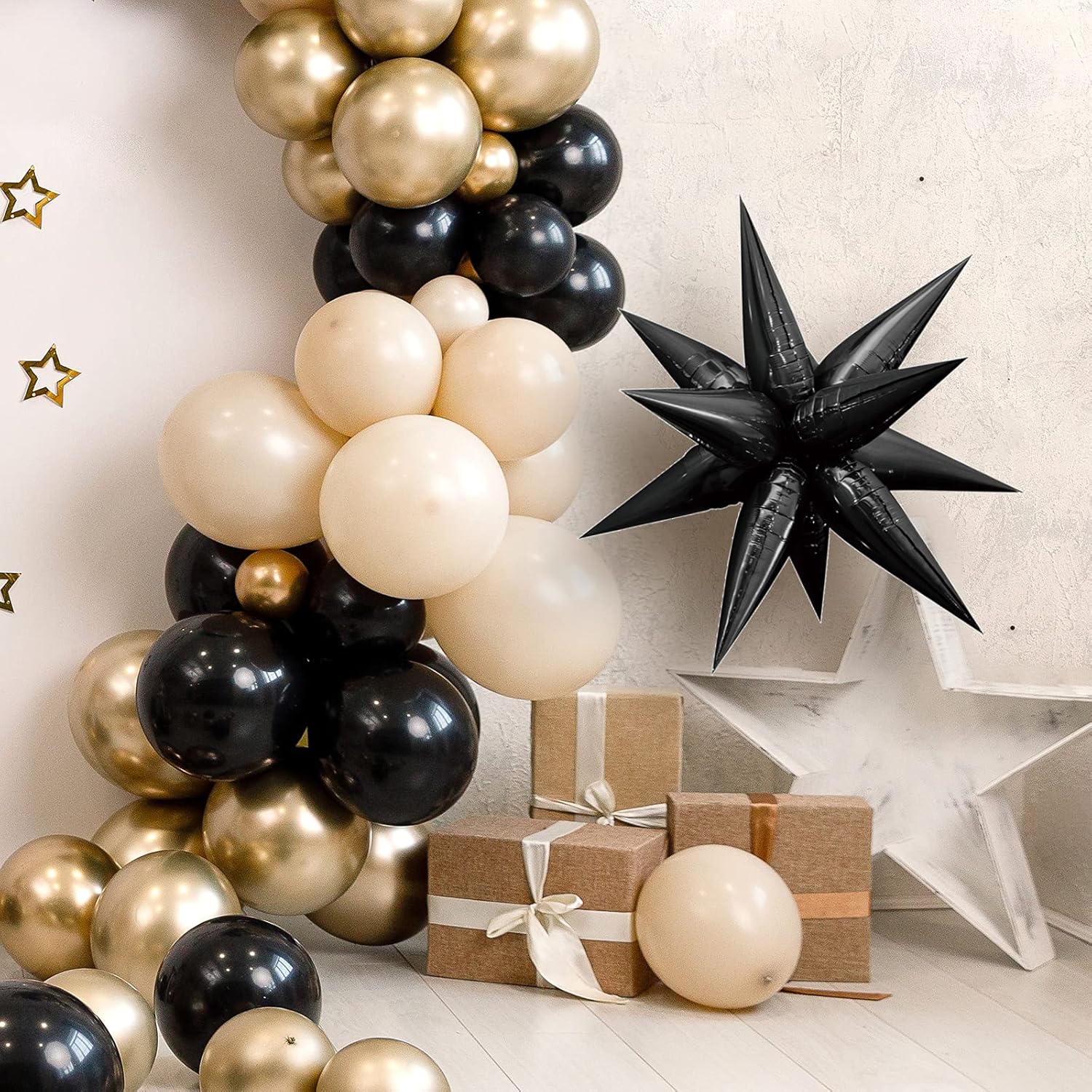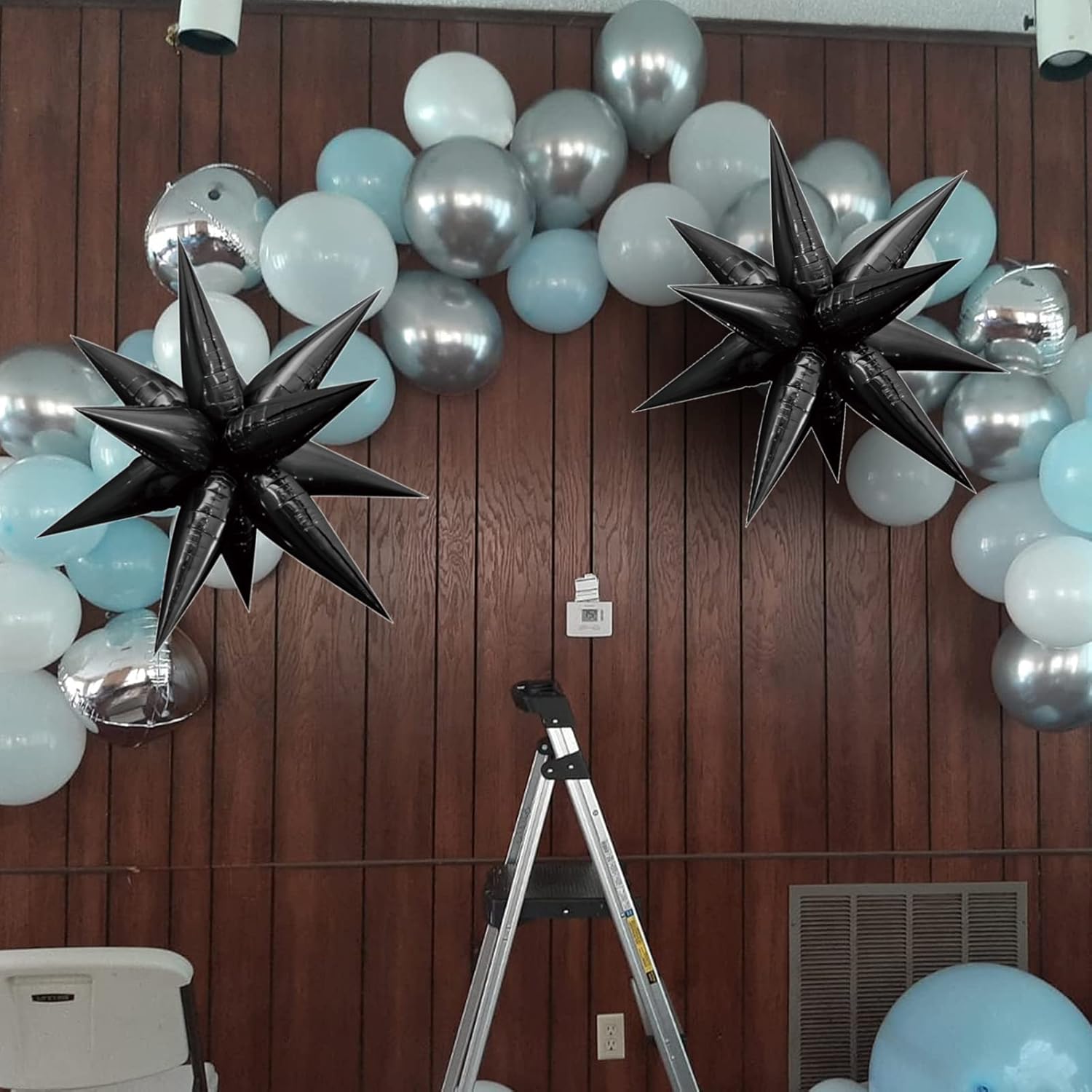 - Star Balloons, Item included 24 pcs drop-balloon, assemble 12pcs drop-balloon into a Star-burst balloon, total 2pcs Starburst balloon