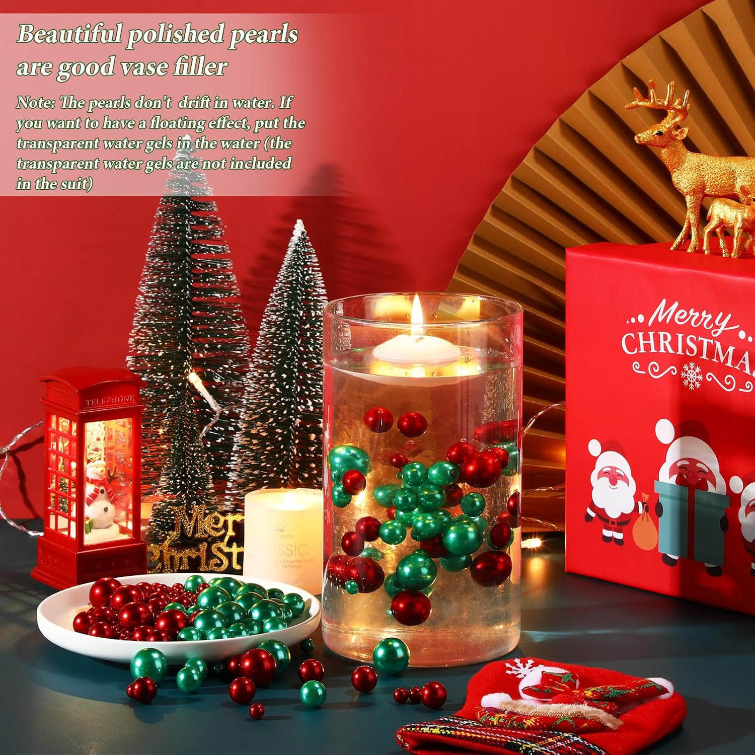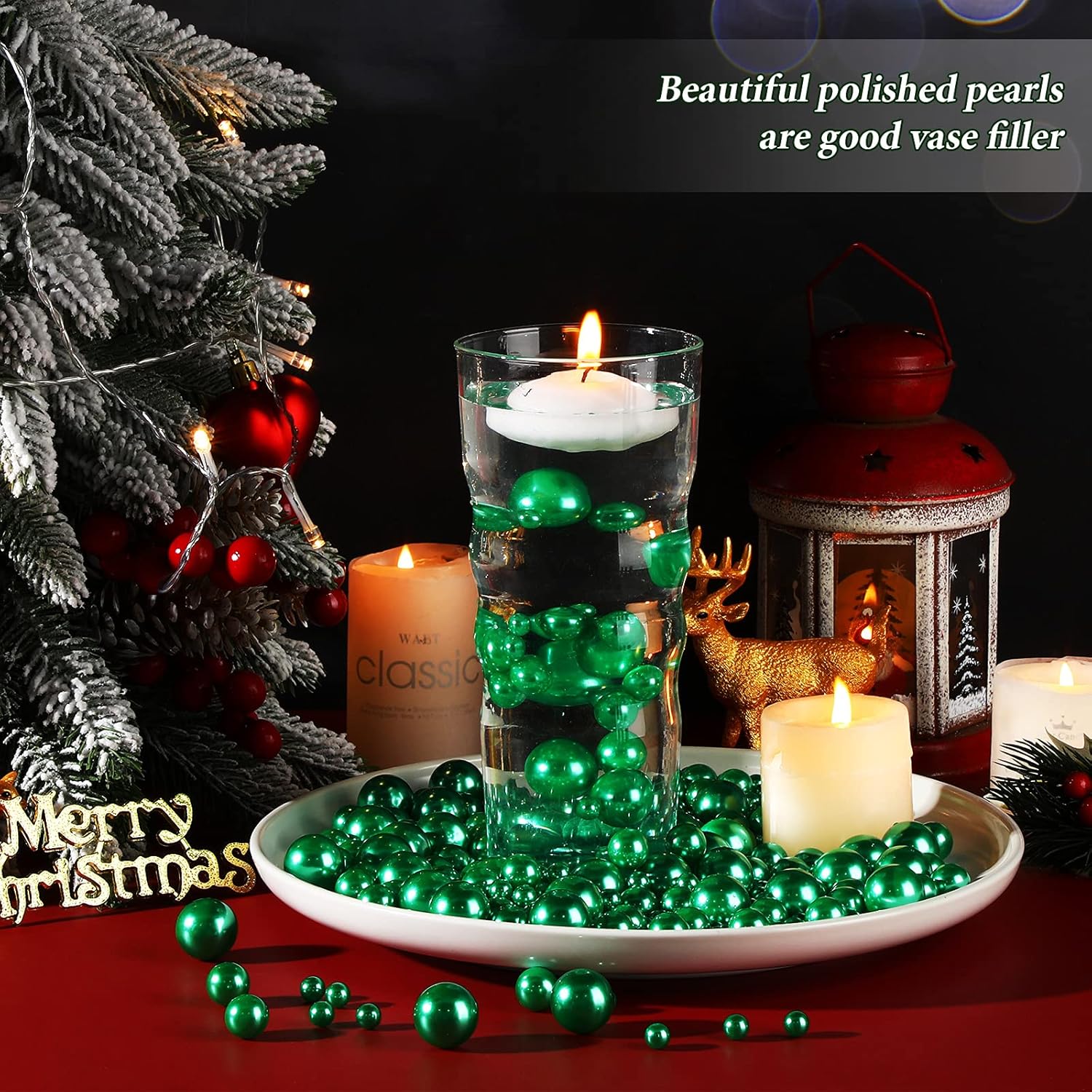 150 Pieces Vase Filler Faux Pearls Vase Makeup Beads No Hole Gloss Bead Mixed Sizes Round Pearl for Home Party Wedding Decor, 8/14/20 mm(Green)