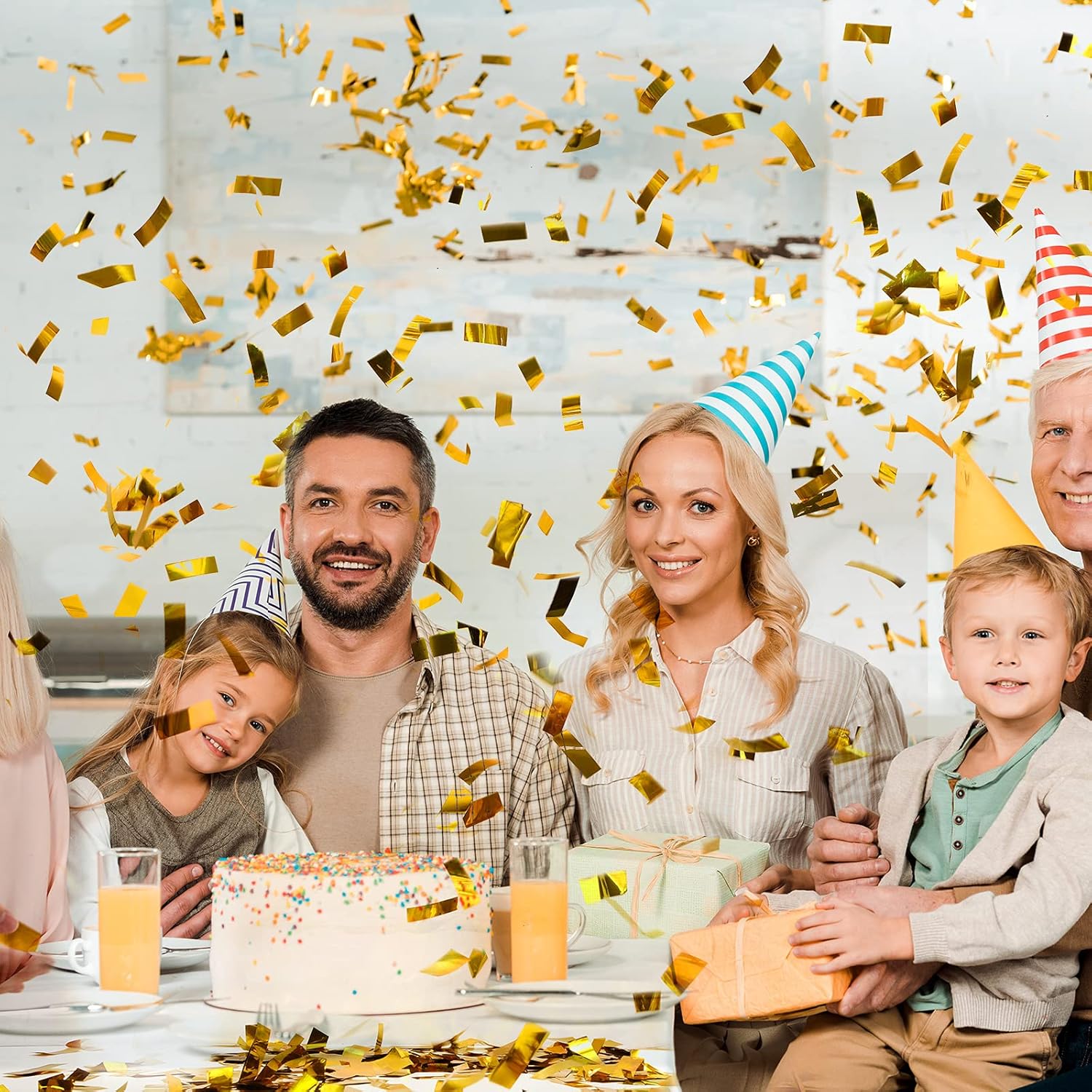 Sumind 200 Grams Gold Silver Large Metallic Confetti Rose Glitter Throwable Table Scatter Foil Confetti for Wedding Birthday Party Baby Shower Graduation Christmas Celebrations(Gold)