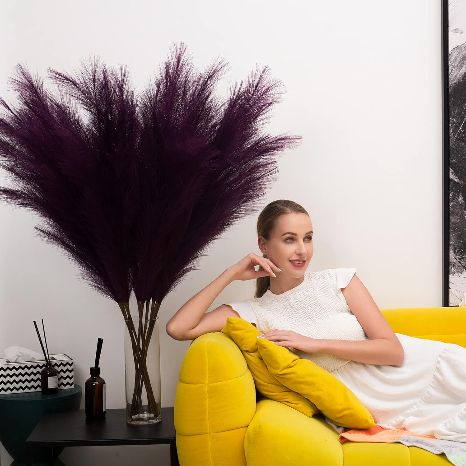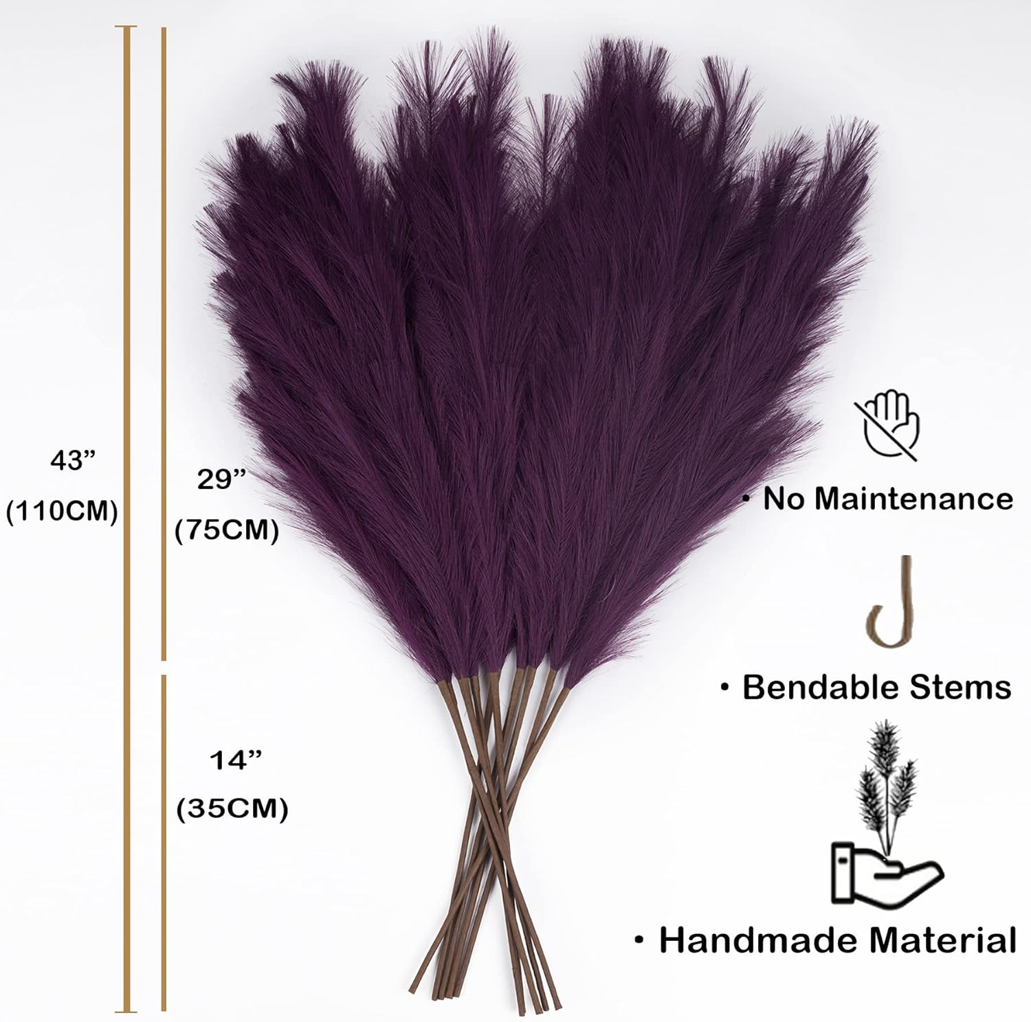 EVODIS Pampas Grass Decor Tall, 43"/110cm Faux Pampas Grass 6 Stems Large Pompass Grass Branches Tall Bulk Boho Flower Arrangement for Home Room Wedding Party Decor(Purple)
