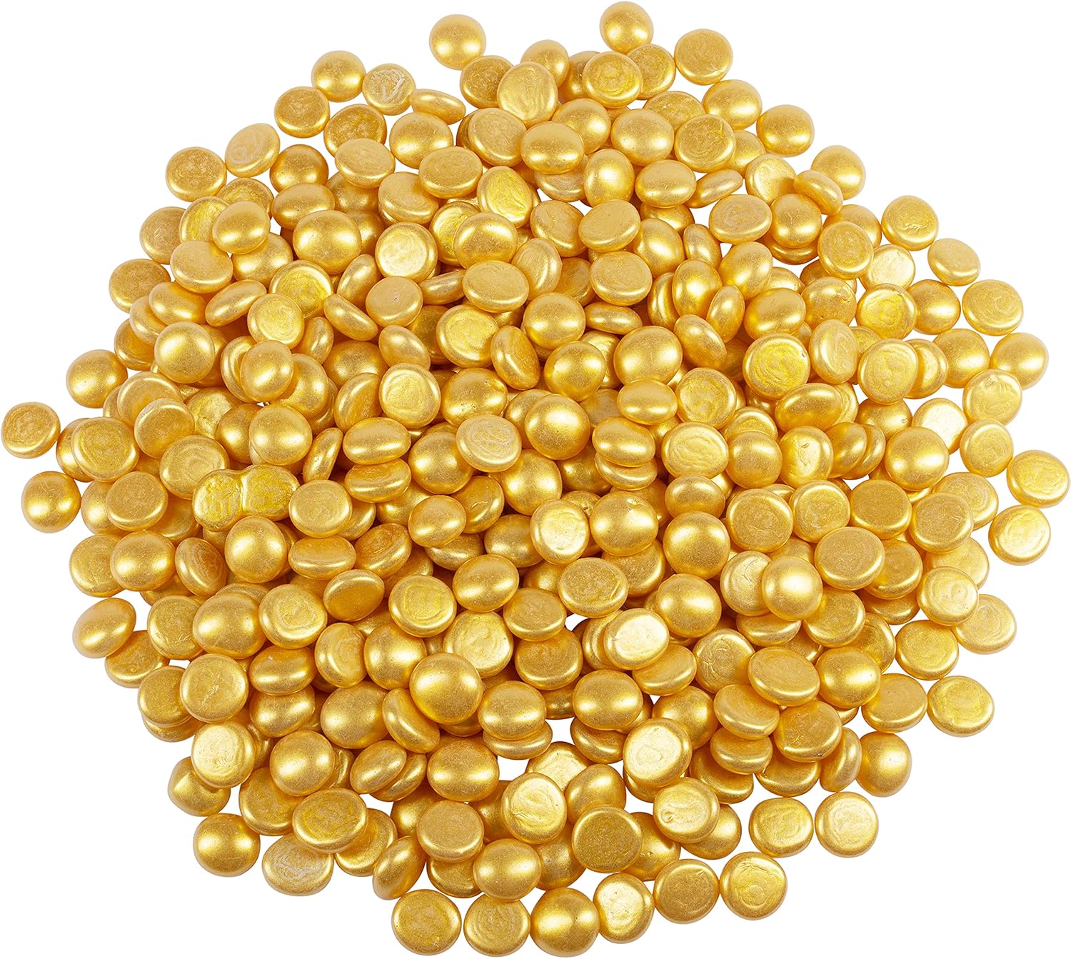 Galashield Flat Glass Marbles for Vases Gold Glass Gems Beads Pebbles Vase Filler (5 LBS, Approx. 540 PCS)