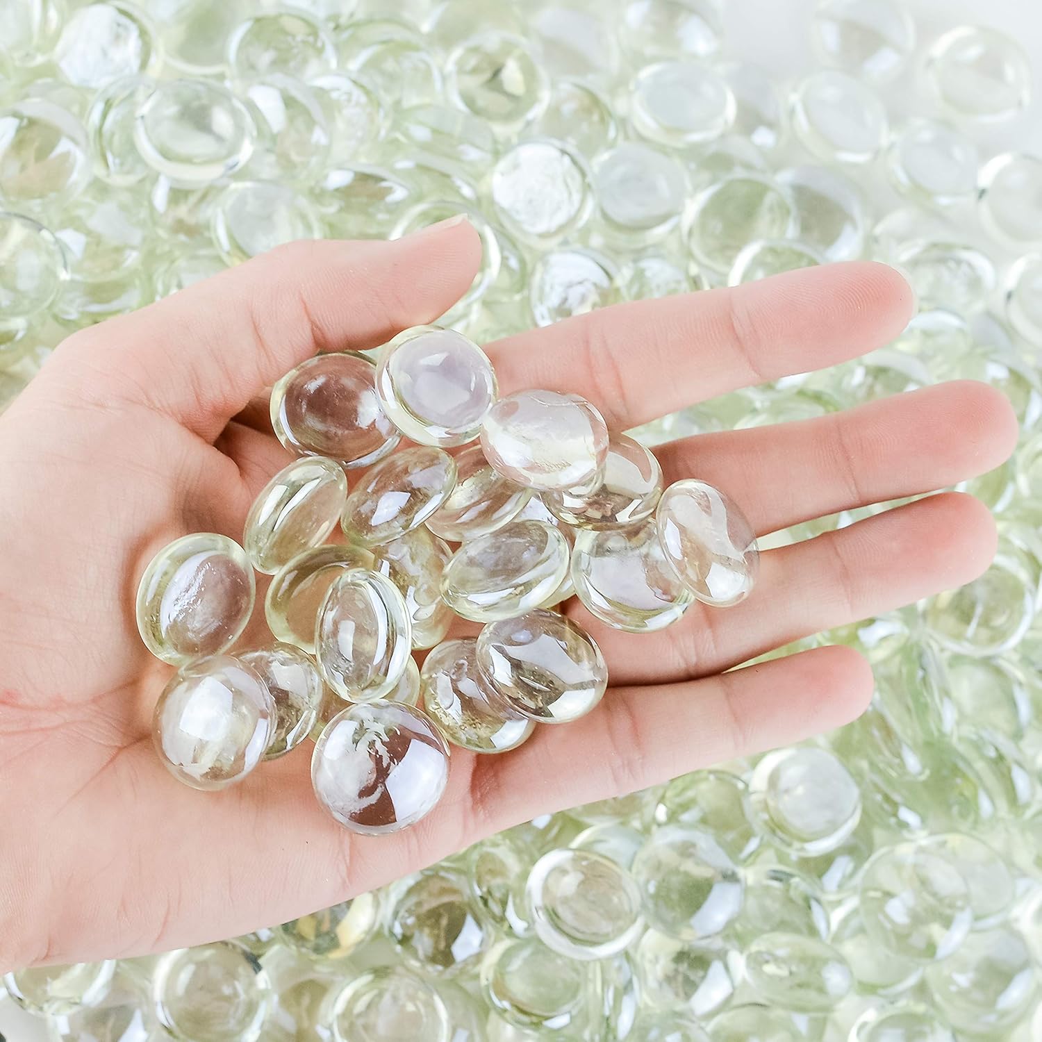 Galashield Flat Glass Marbles for Vases Clear Glass Gems Beads Pebbles Vase Filler (1 LB, Approx. 105 PCS)