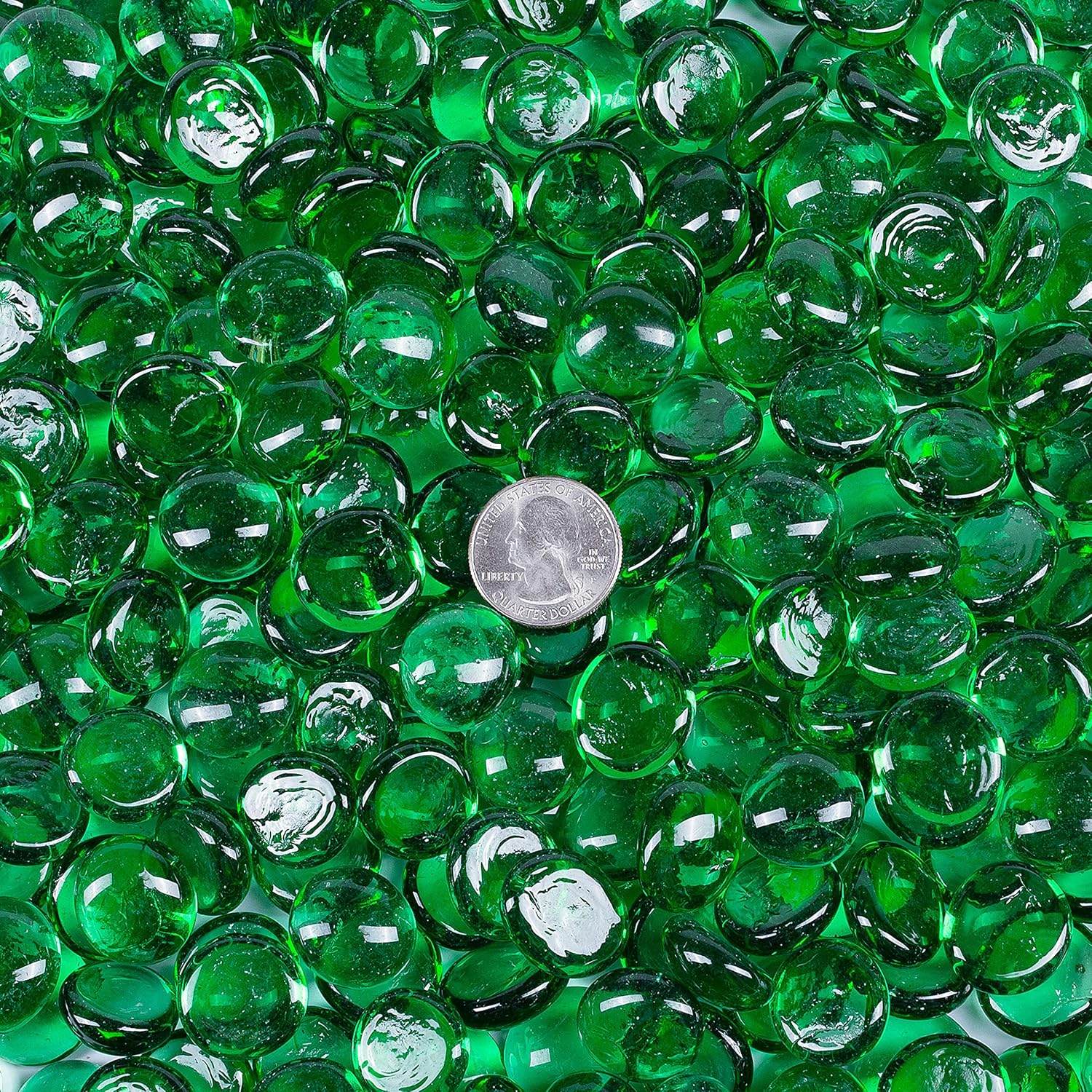Galashield Flat Glass Marbles for Vases Green Glass Gems Beads Pebbles Vase Filler (5 LBS, Approx. 540 PCS)