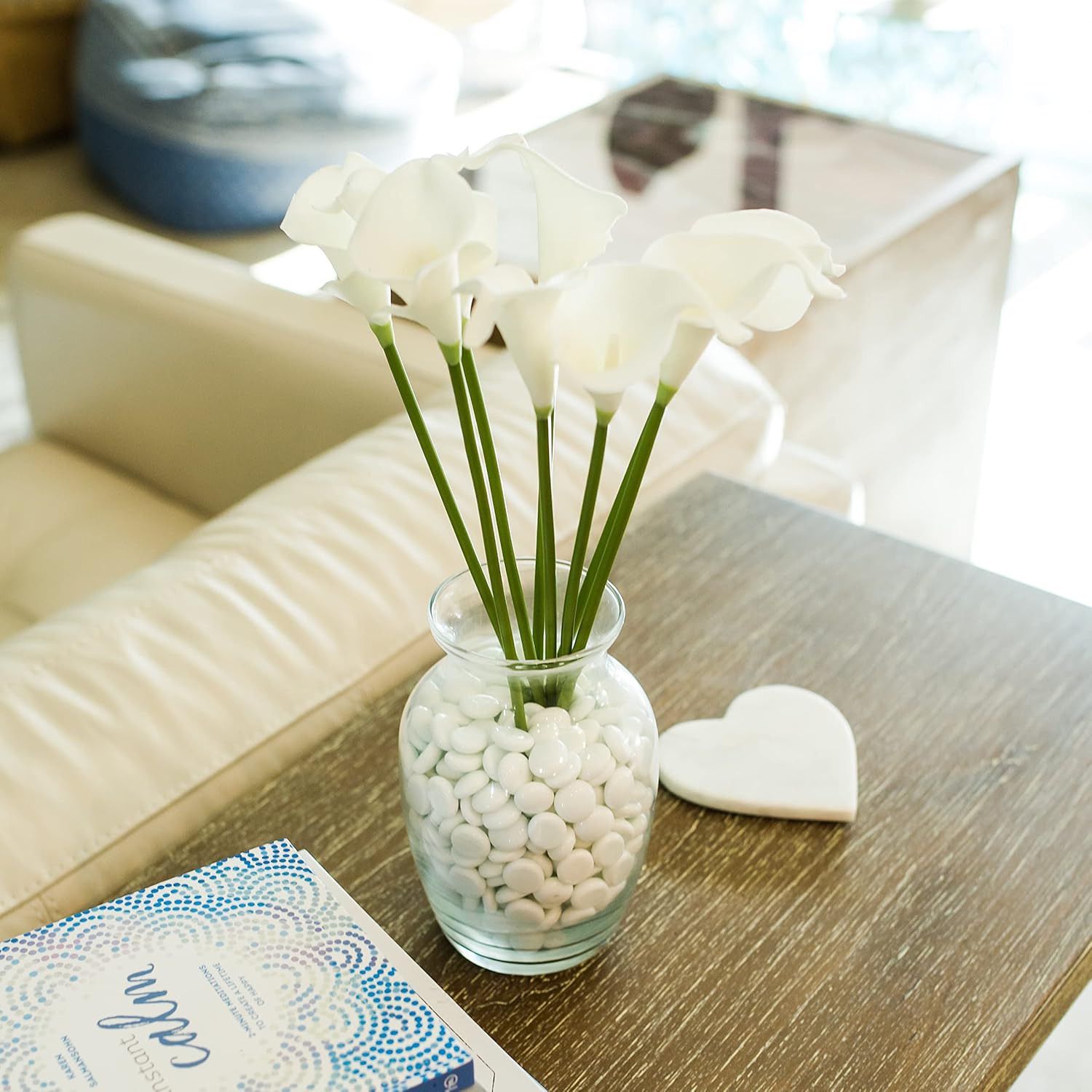 Galashield Flat Glass Marbles for Vases White Glass Gems Beads Pebbles Vase Filler (5 LBS, Approx. 540 PCS)