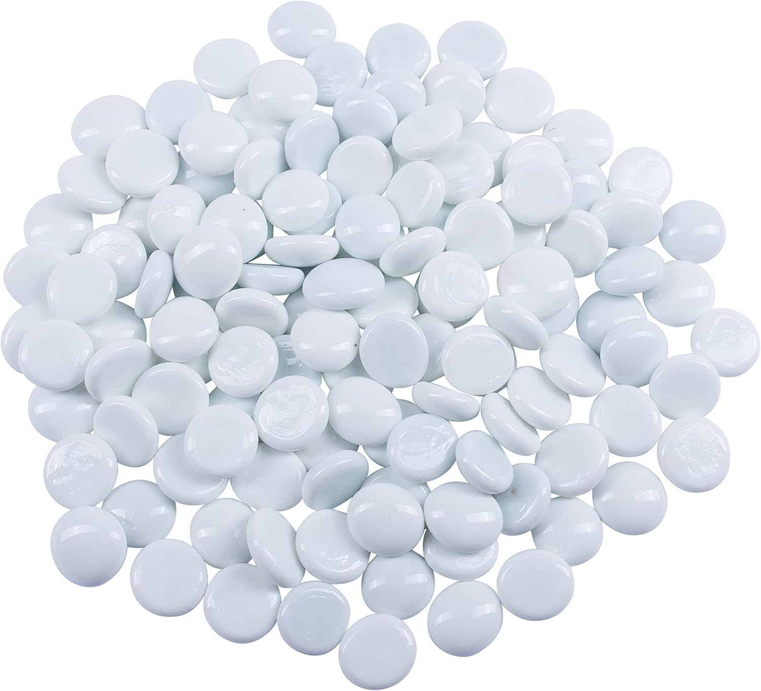 Galashield Flat Glass Marbles for Vases White Glass Gems Beads Pebbles Vase Filler (1 LB, Approx. 105 PCS)