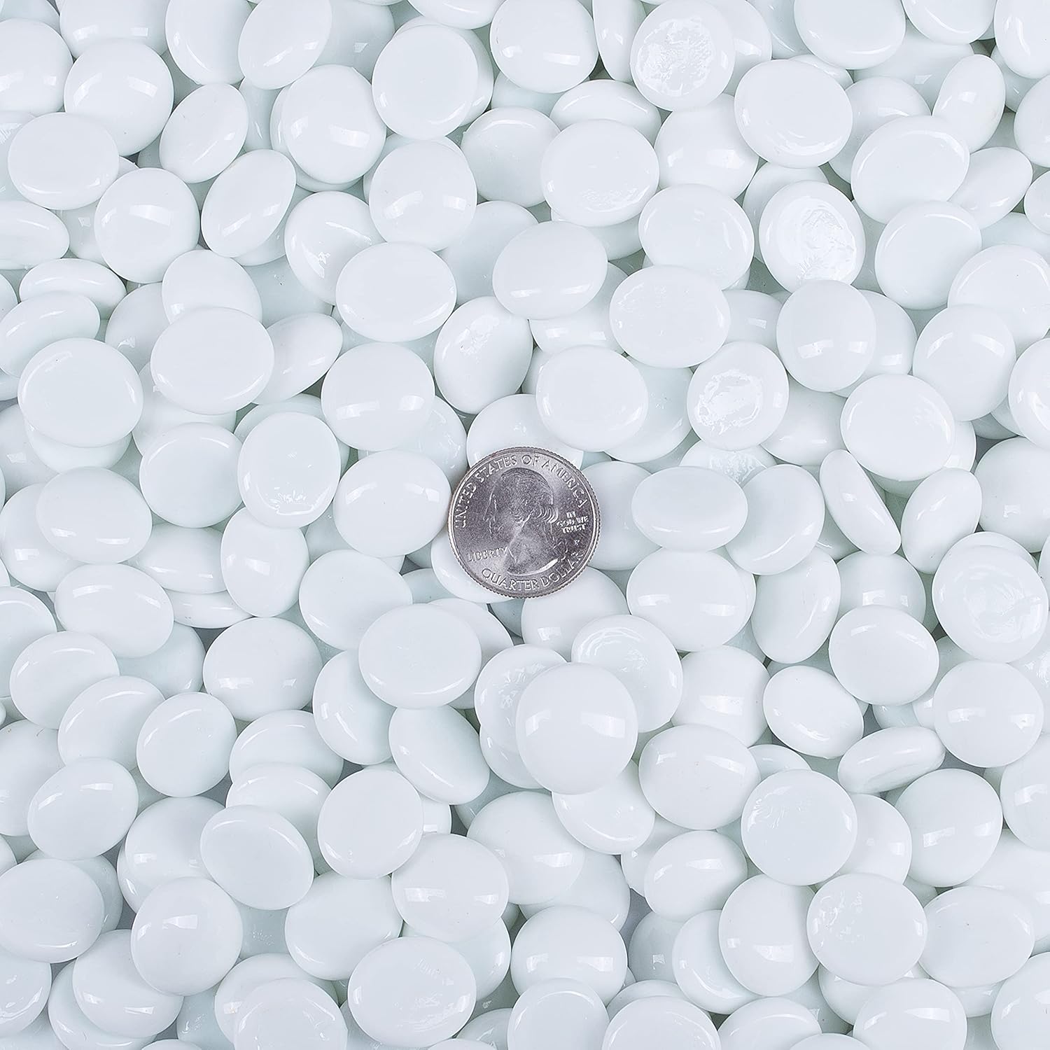 - Glass white marbles stones with smooth surface and flat bottom