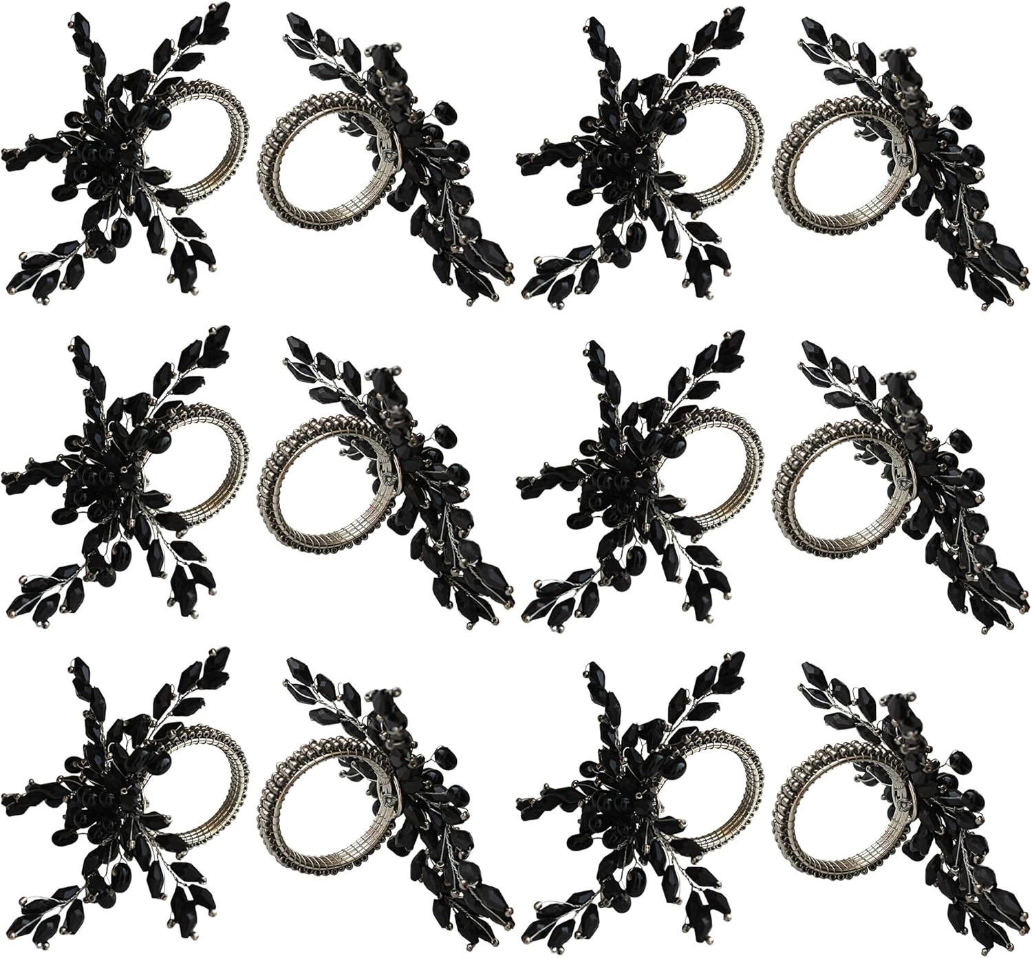 Napkin Rings Set of 12 for Dining Table Decoration Parties Everyday Metal Napkin Holder Leaf Black (Pack of 12)