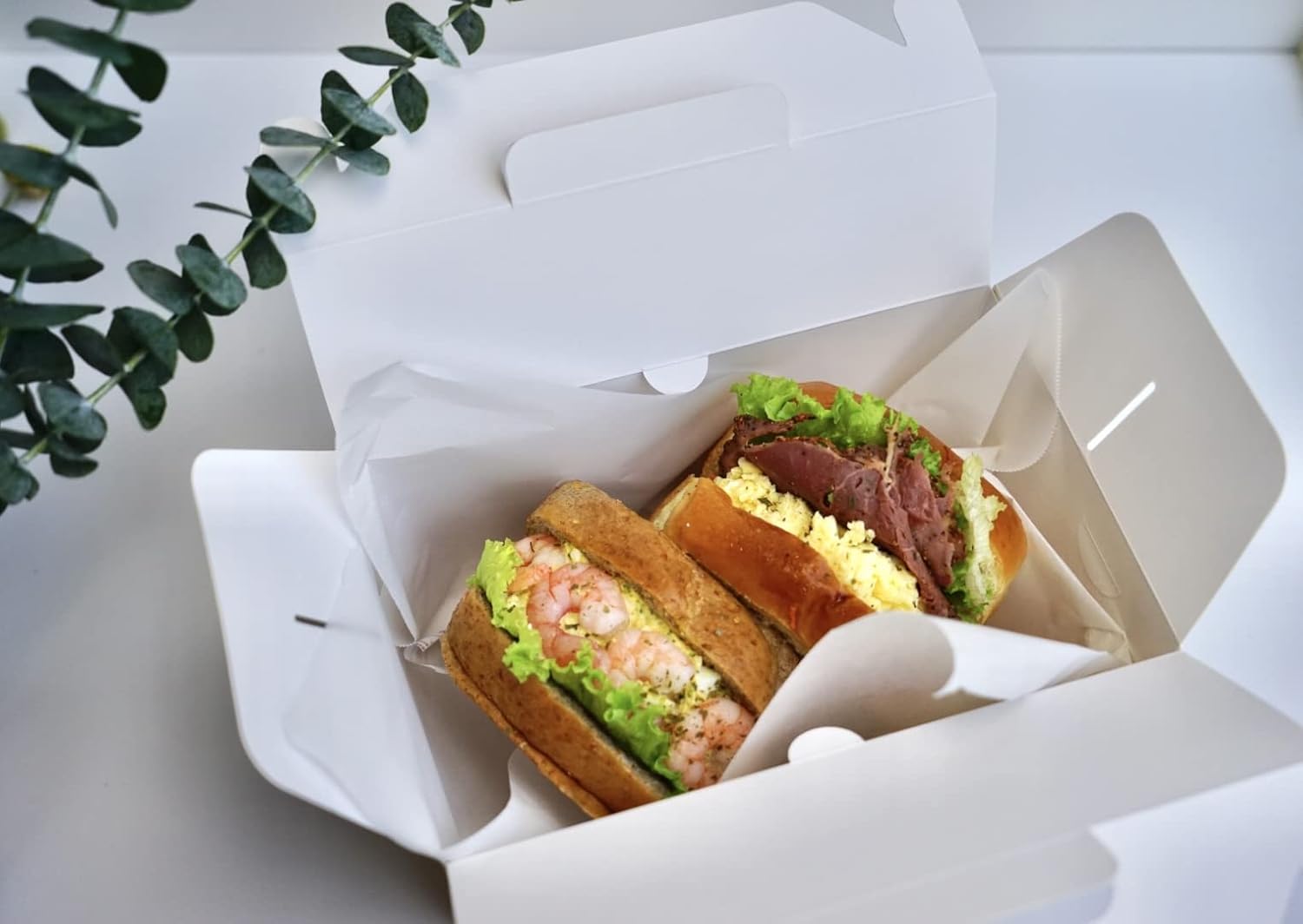 - The outside is brown and the inside is white. Ideal for packaging dry, chilled, and frozen food such as cakes, sandwiches, chocolates and donuts, and non-food items such as flowers, toys, gifts and party favors.