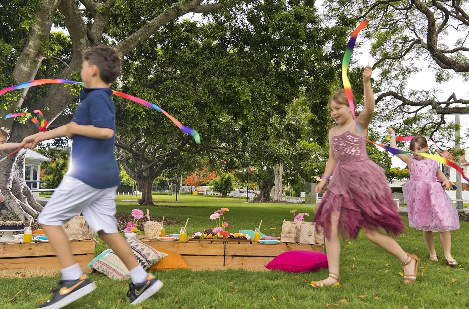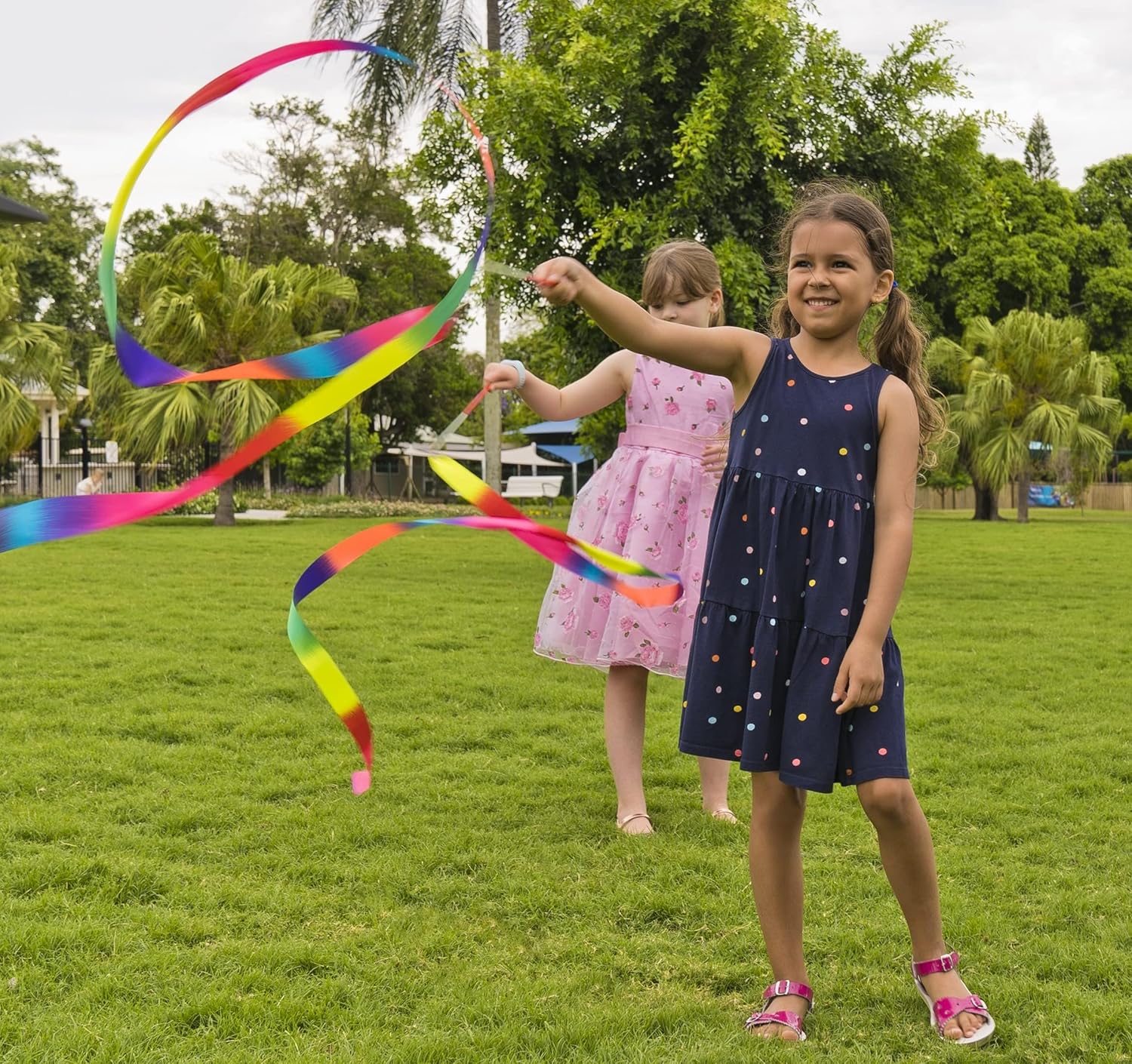 - Reusable Party Favors: Ribbon rainbow wands can be a fit for various kids party themes, unicorn, princess, fairy, gymnastics. They are the matching rainbow party decorations and are great for party games and activities. Reusable and eco-friendly, these dance ribbons are a great sustainable choice for party favors and return gifts in kids goodie bags. Children will love taking them home to continue the twirling fun, they’ll favor the ribbon steamer as a cherished toy long after the party ends.