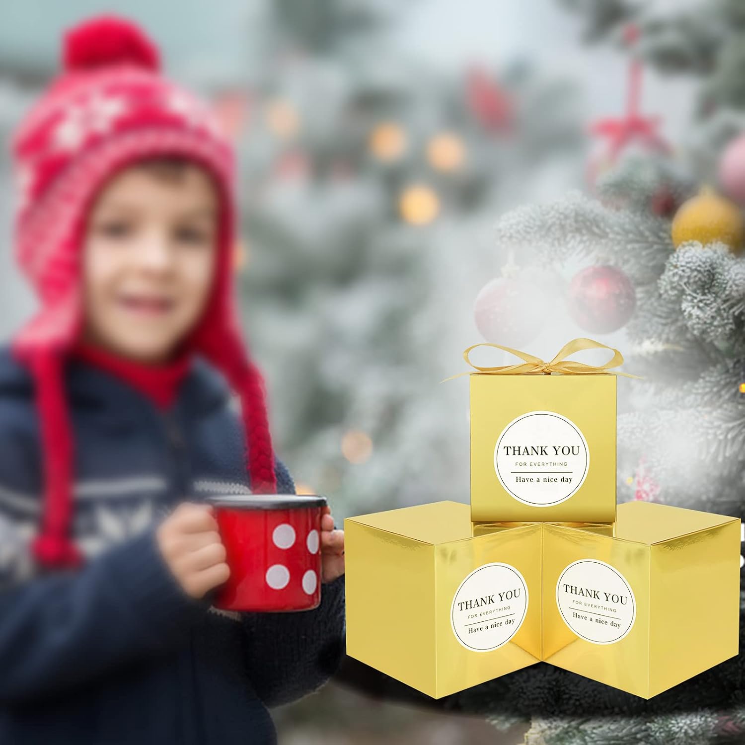 - What You'll Get: 100pcs gold favor boxes,100pcs pink ribbons and 100pcs Thank you stickers. you can tie a bow knot on top, which will be more elegant and romantic for party.