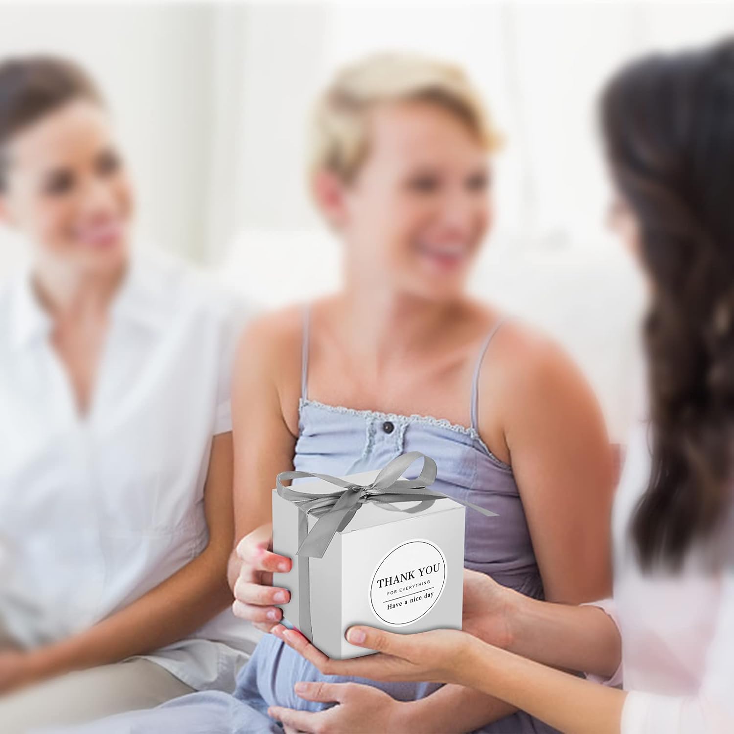 - What You'll Get: 100pcs Metallic Silver favor boxes,100pcs slver ribbons and 100pcs Thank you stickers. you can tie a bow knot on top, which will be more elegant and romantic for party.