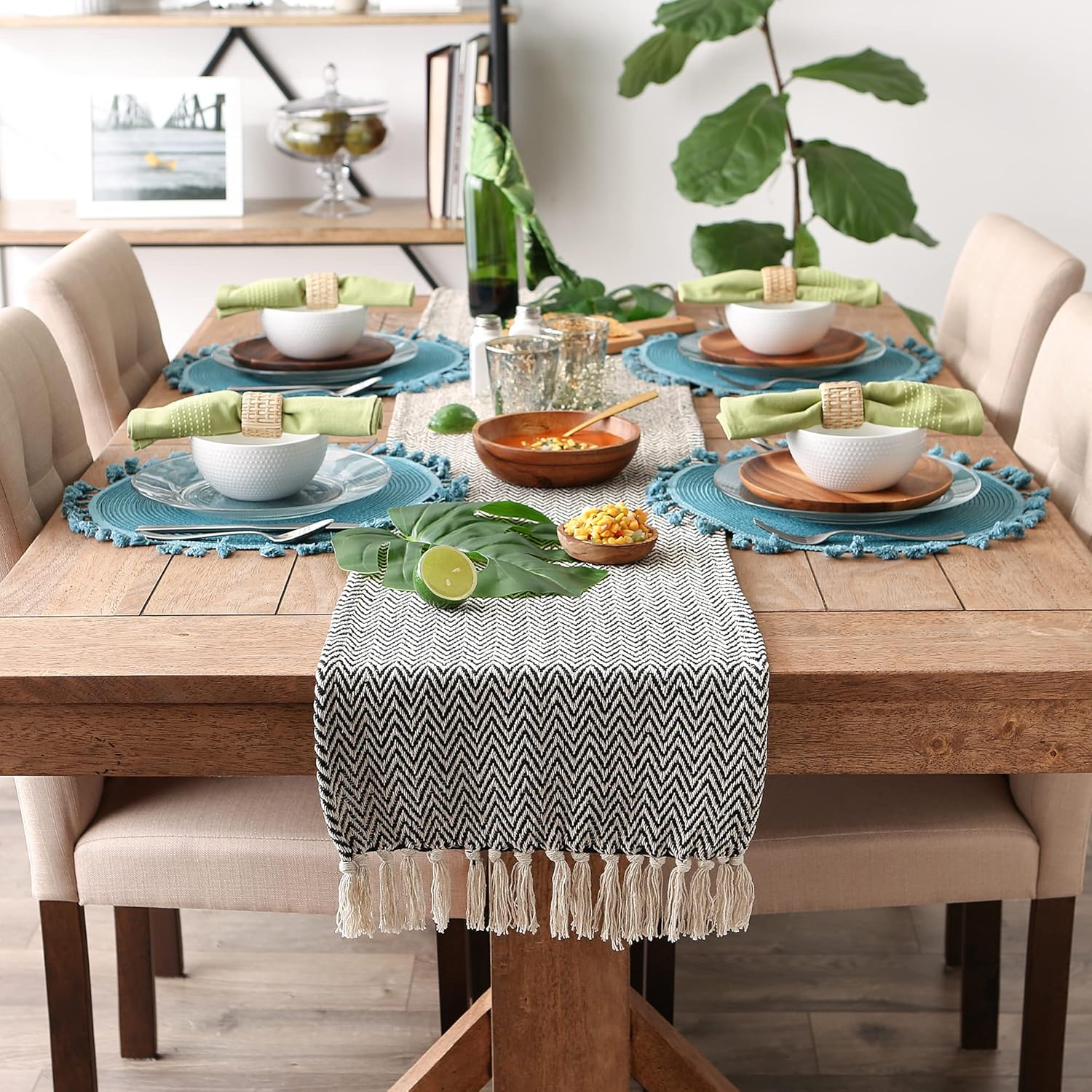 • TIMELESS DESIGN: Like a favorite knit sweater, the runner has lots of texture and full of detail, fringed edges have a casual look that works with any style of dishes
