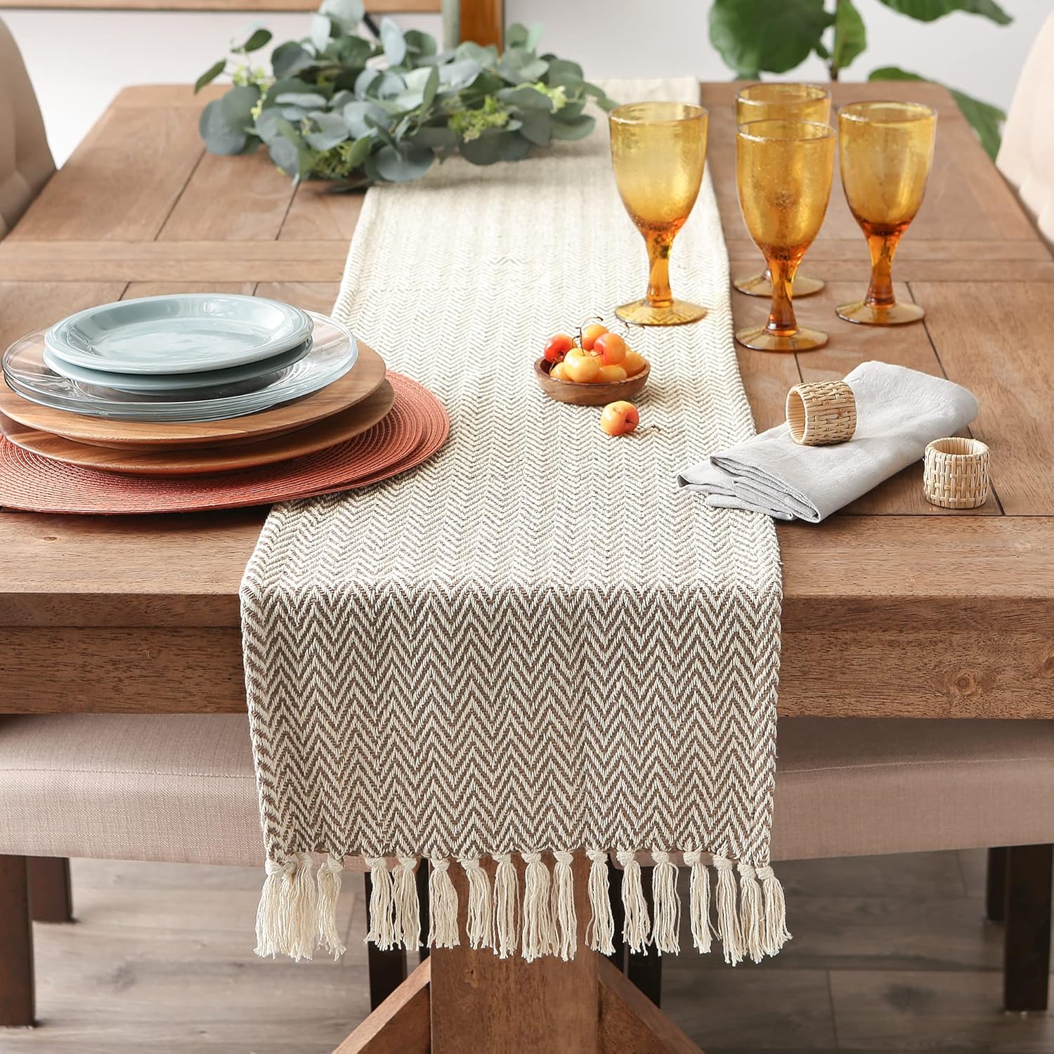 • TIMELESS DESIGN: Like a favorite knit sweater, the runner has lots of texture and full of detail, fringed edges have a casual look that works with any style of dishes
