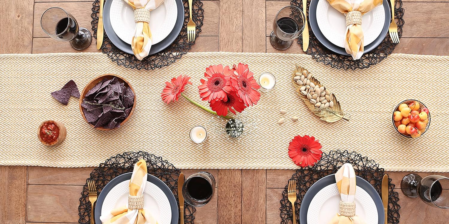 • TIMELESS DESIGN: Like a favorite knit sweater, the runner has lots of texture and full of detail, fringed edges have a casual look that works with any style of dishes