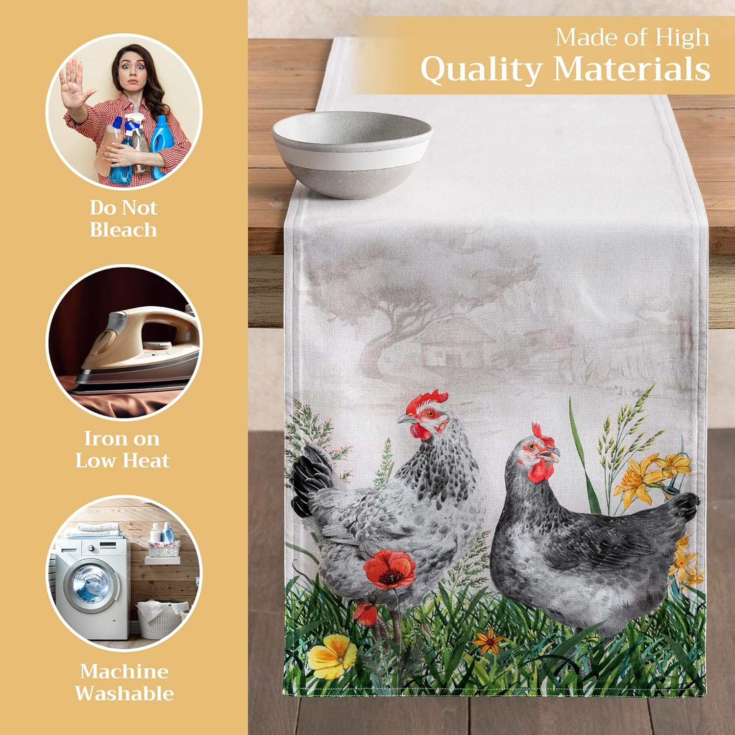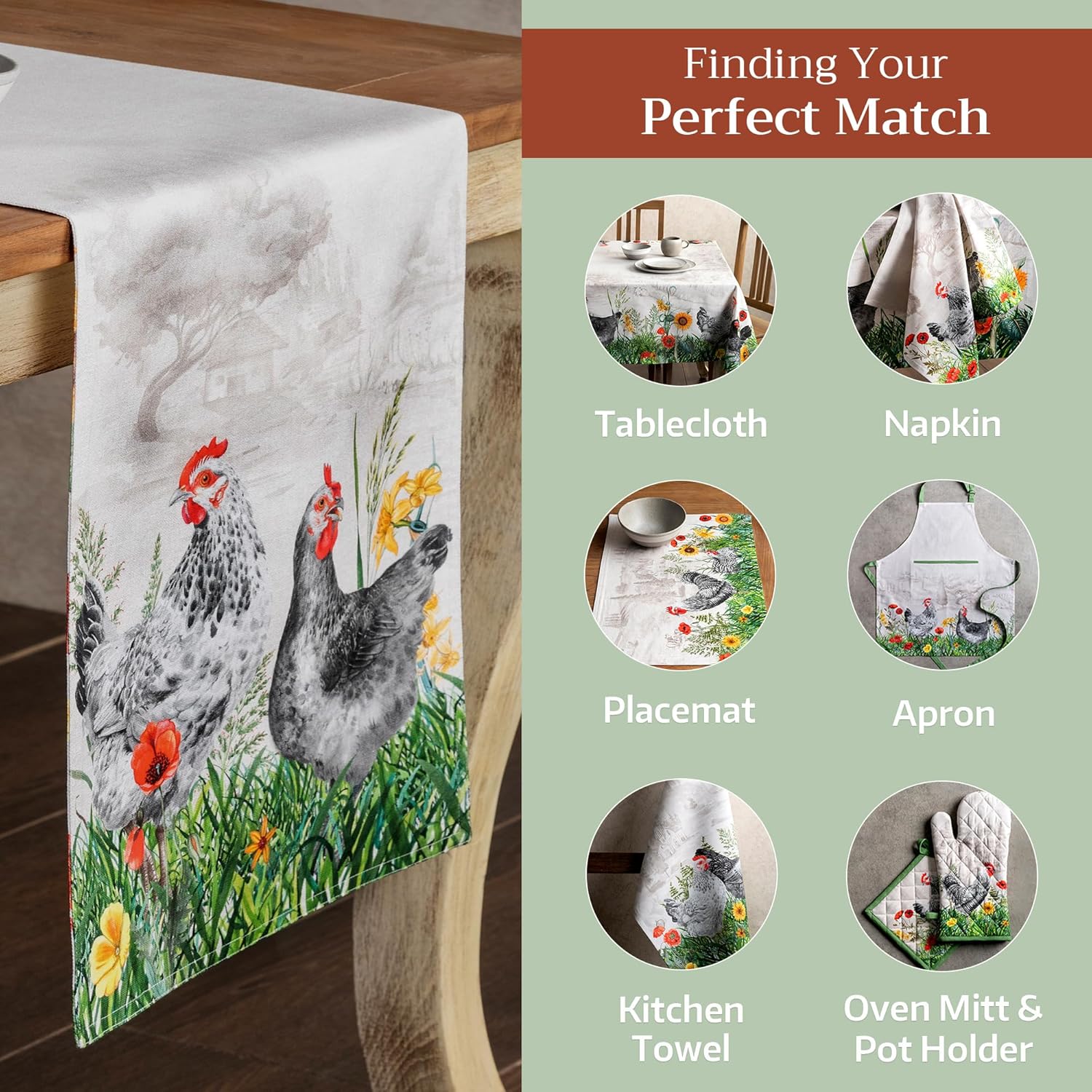 Maison d' Hermine Table Runner 100% Cotton Double Layer Table Runners 108 inches Long Decorative for Home Kitchen Dining Party Wedding Bridal Shower Spring Summer (Basse Cour, 14.50" x 108")
