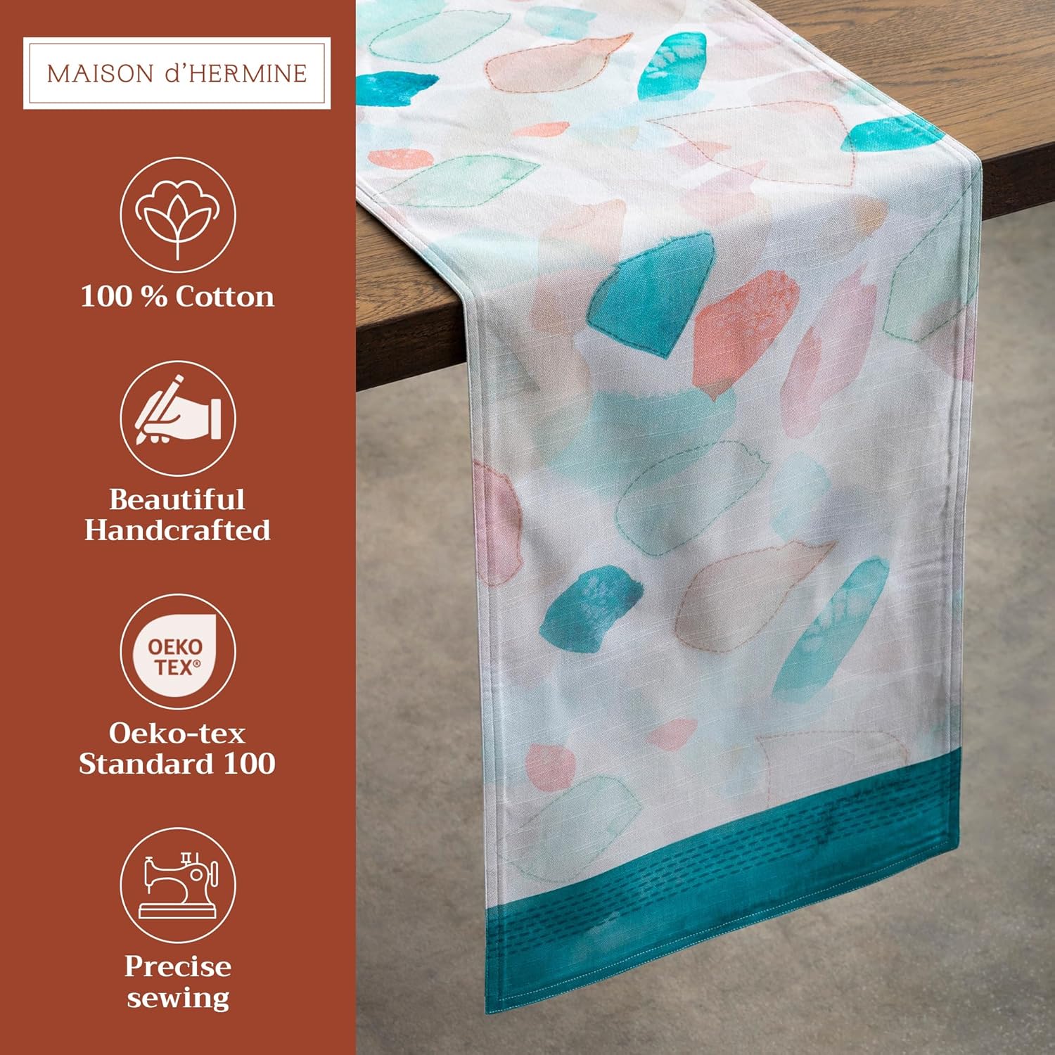- Unique design: Each table runners features watercolor artwork inspired by traditional European motifs, with intricate details and vibrant hues. Designed in Europe and made in India, it captures the warmth and elegance of artisan-crafted décor.