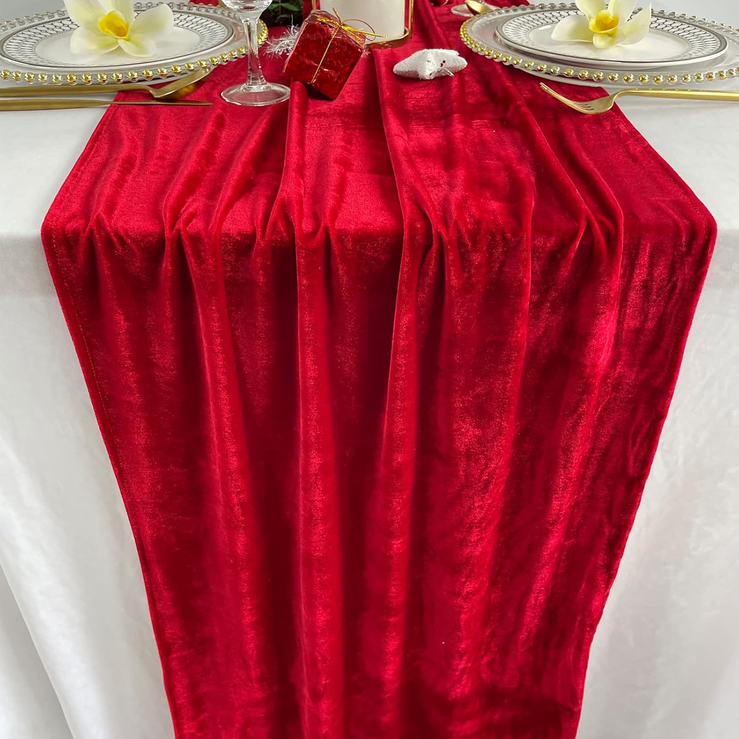 Luxurious Velvet Table Runner, 10ft Wedding Reception Decorations, 20x120inch Soft Velvet Fabric, Table Linen Overlay, Wedding Table Runners (Red, 20X120inch)