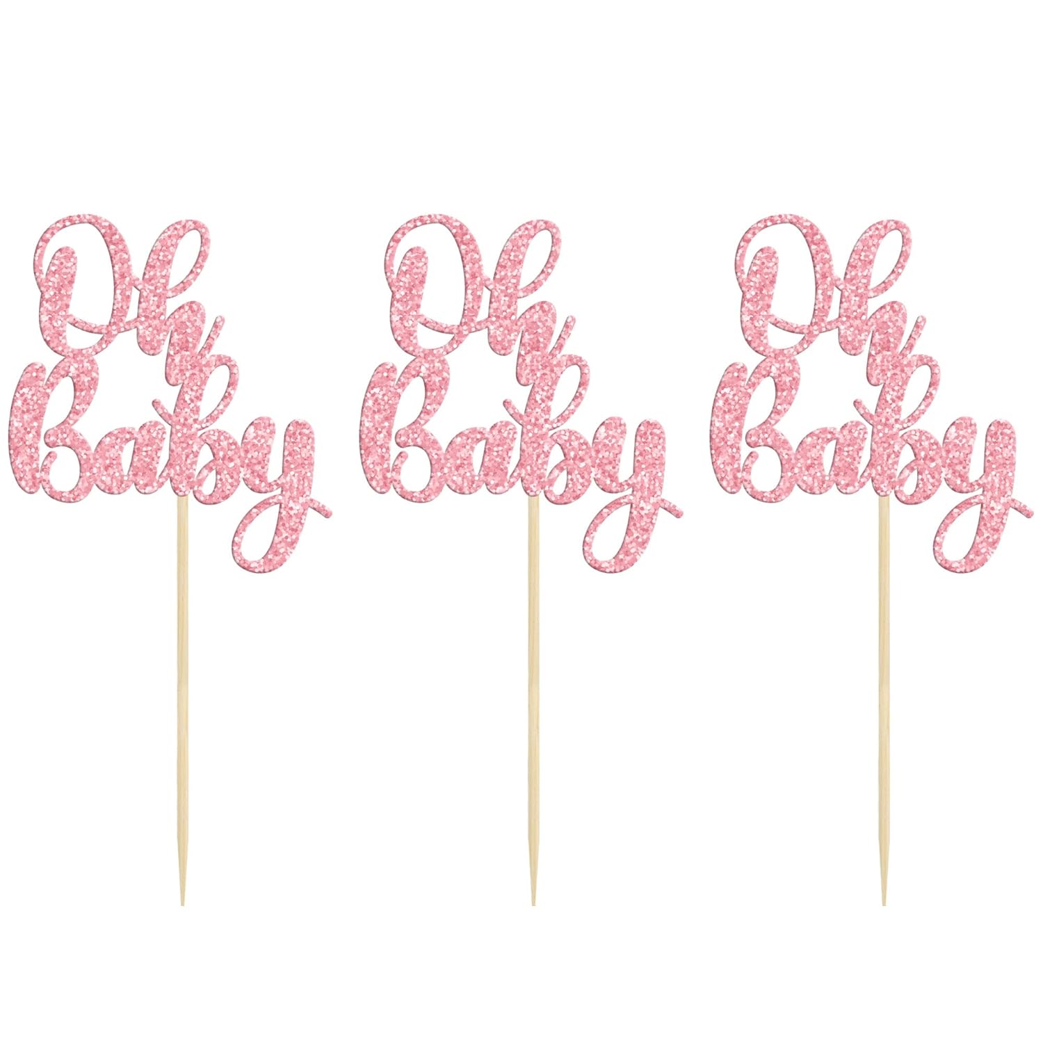 Gyufise 36 Pack Oh Baby Cupcake Toppers Glitter Baby Shower Cupcake Picks Decorations for Celebrating Baby Shower Kids Birthday Party Supplies Rose Gold