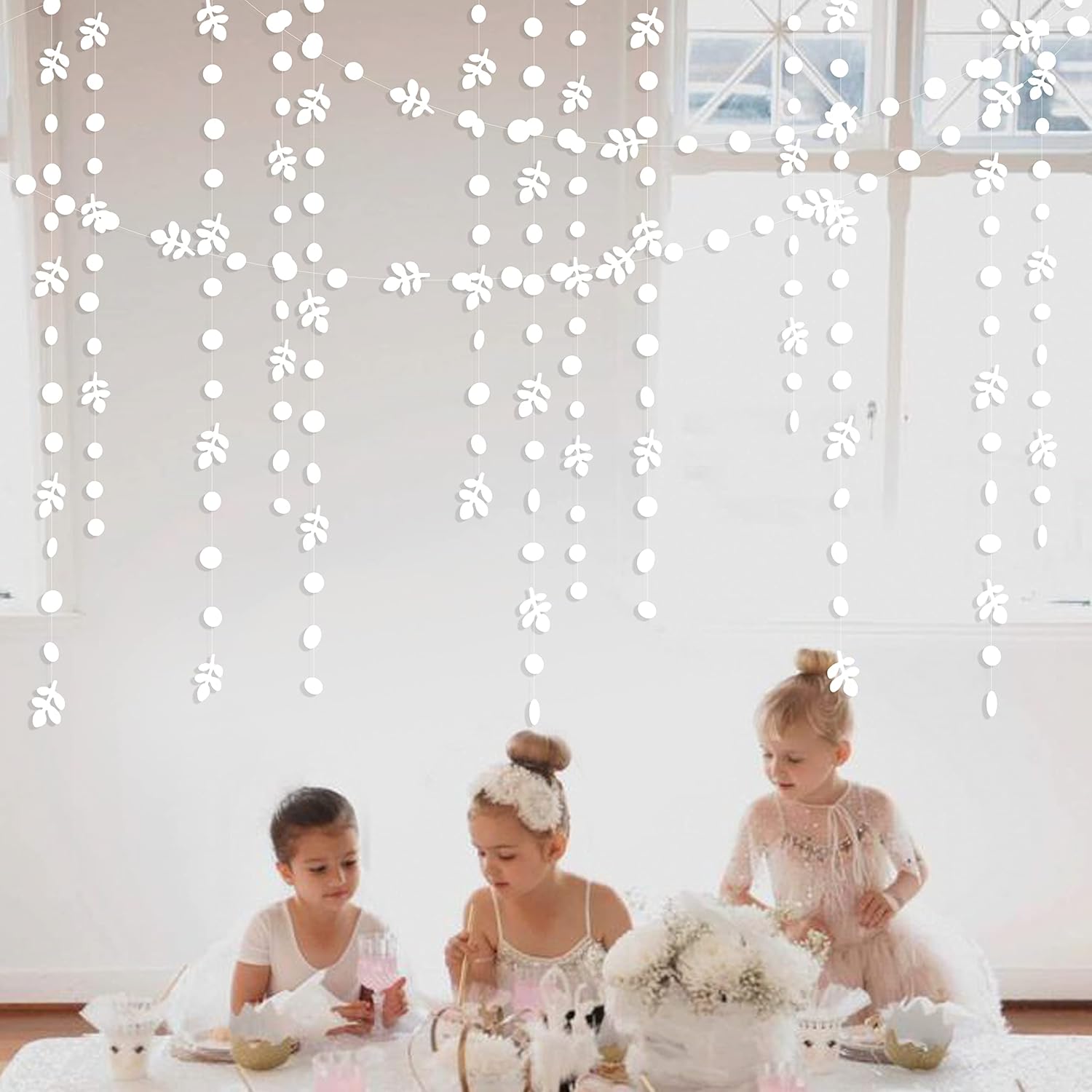 - 🤍PACKAGE CONTAINS-4 packs of white leaf polka dot paper garland,each string is 13 feet/ 4 meters.Total length is 52 feet/ 16 meters.