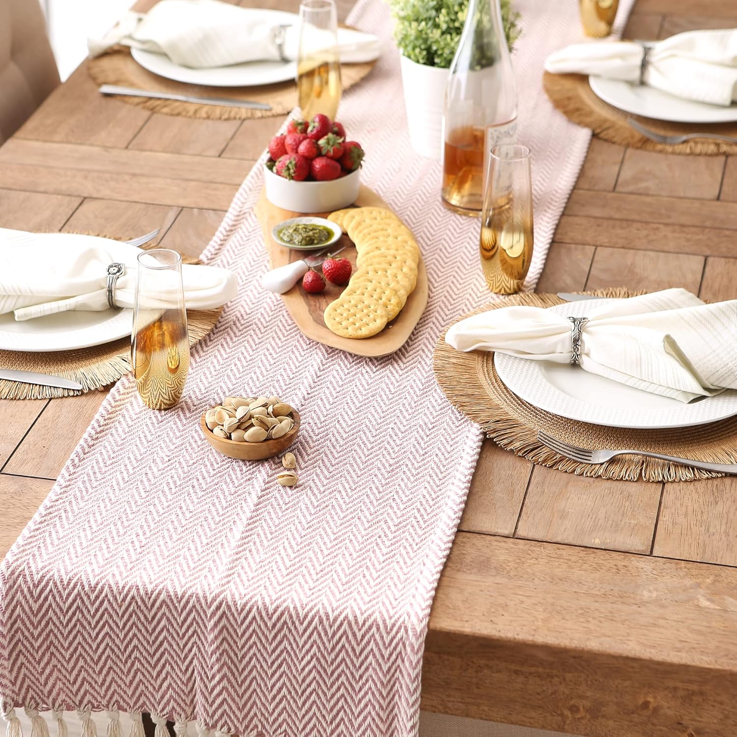 - TIMELESS DESIGN: Like a favorite knit sweater, the runner has lots of texture and full of detail, fringed edges have a casual look that works with any style of dishes